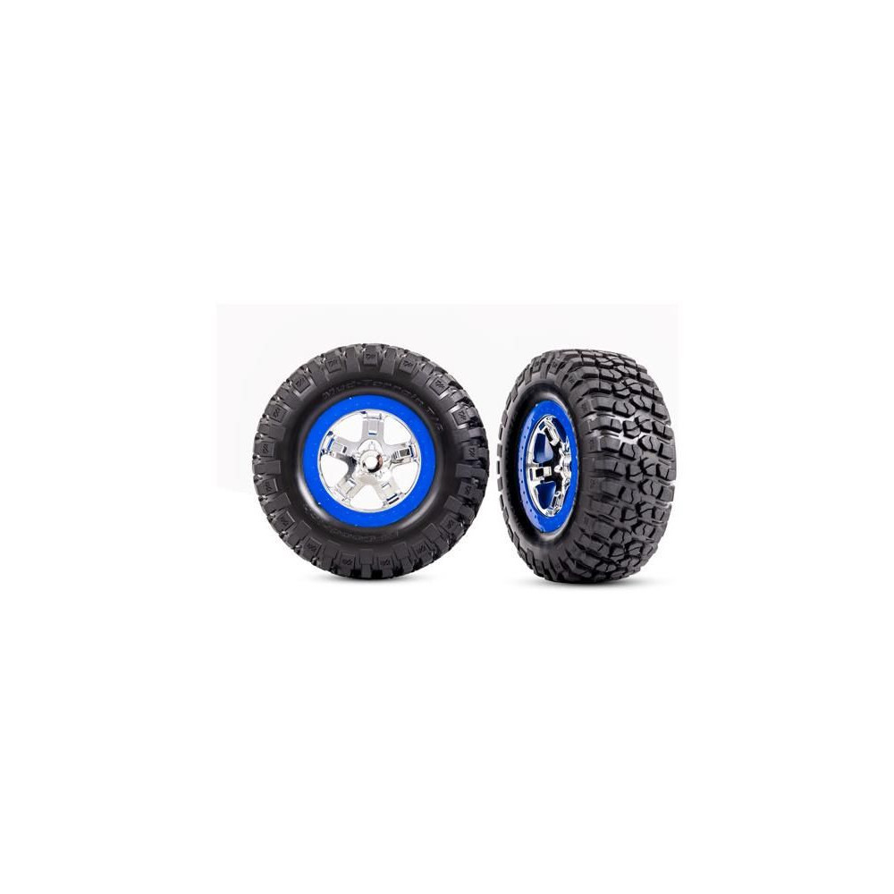 Teljes hátsó kerekek 2WD, első és hátsó kerekek 4WD Traxxas Slash-hez. Krómozott kerekek kék felnikkel és BFGoodrich® gumiabroncsok betéttel. Tárcsaméret 61/81x42 mm. Teljes méret 110x46 mm. A hordozó 12 mm-es hatszögletű, 24 mm-es eltolással.