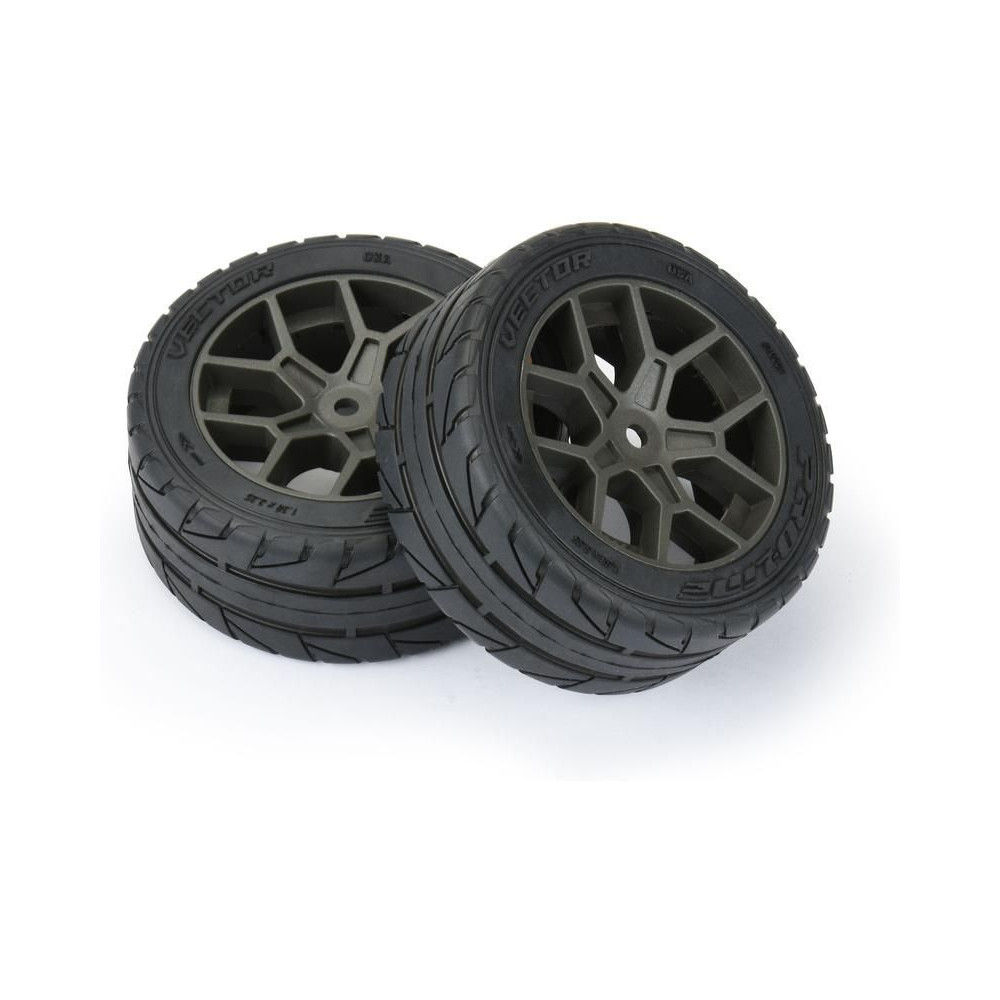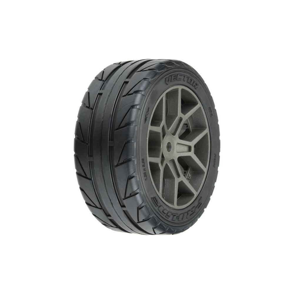 Pro-Line keréktárcsa 2.4" Vector S3 35/85 öves, szürke H12 tárcsa (2 db), RC autó modellekhez 1:8 Street Bash. Méretek ⌀87x36mm. S3 keverék (Soft). Open Cell betét.