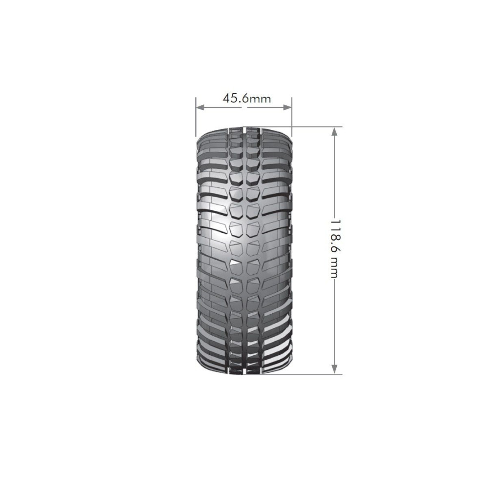 Komplett kerekek 1/10-es crawler/expedíciós modellekhez. Univerzális gumiabroncsok száraz és nedves úton, de igazából bármilyen felületre alkalmasak. Felnik 12 mm-es hex. adapterhez.