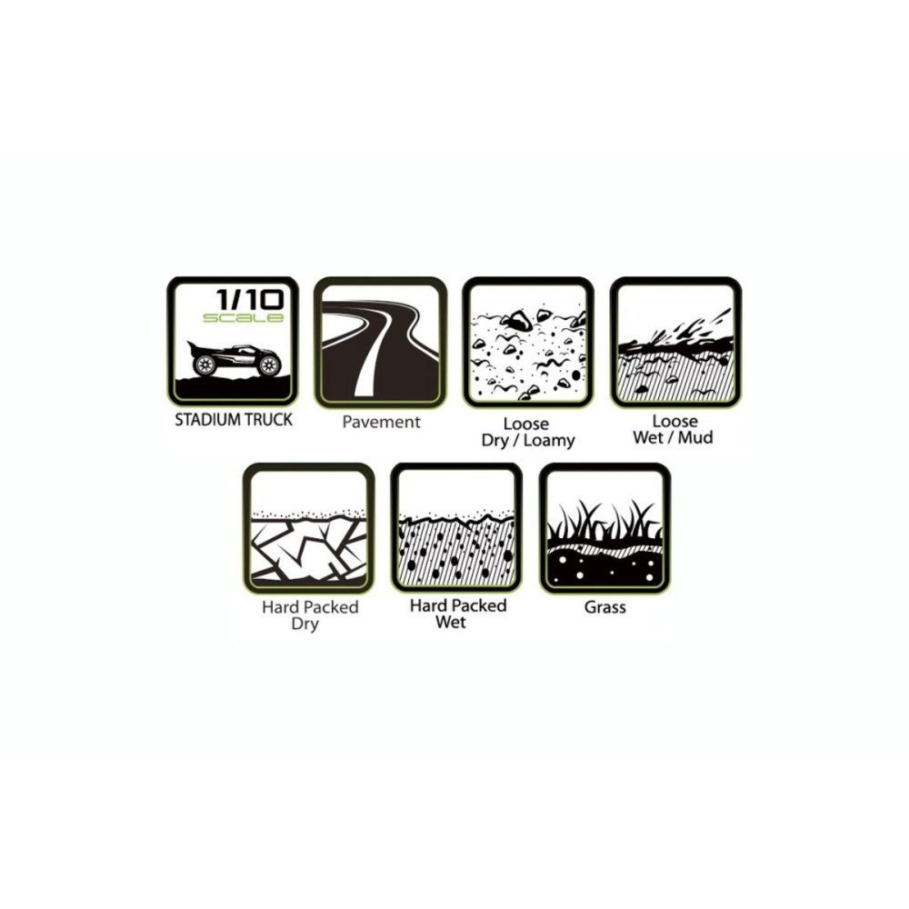 Komplett kerekek 1/10-es truggy-hoz. Minden felületen használható gumiabroncsok. Felnik Traxxas Stampede és Rustler modellekhez.