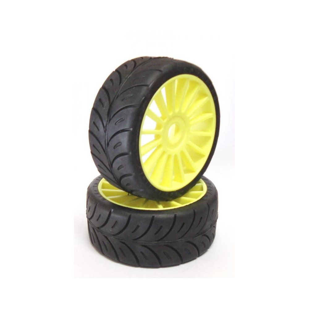 1/8 GT COMPETITION gumiabroncsok MEDIUM - ON MULTI ragasztott gumiabroncsok, sárga tárcsák, 2db.