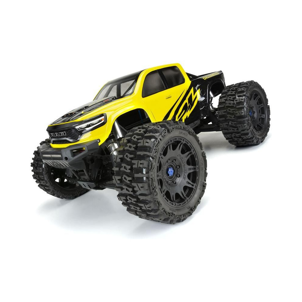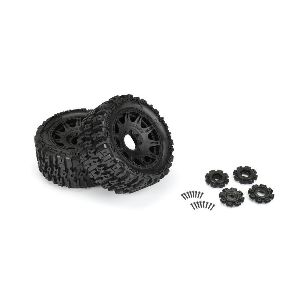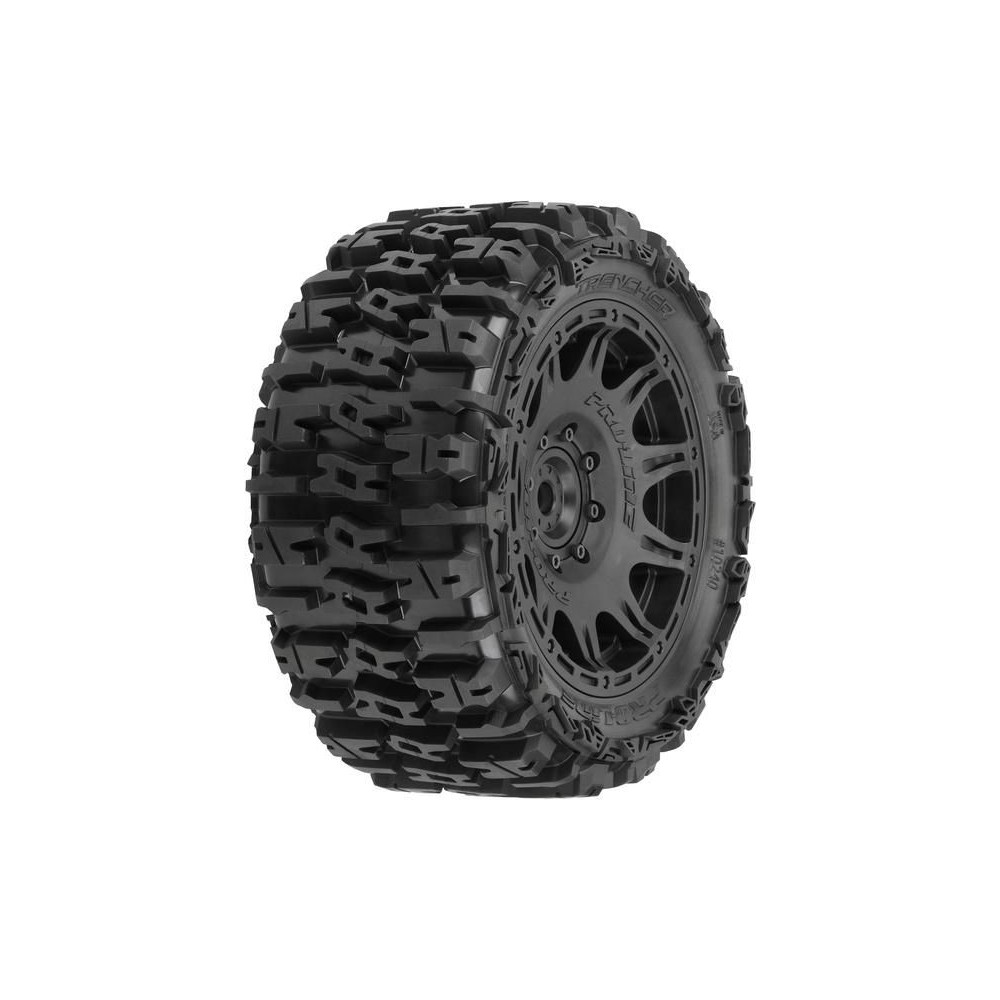 Komplett Pro-Line kerekek (2db) 1:6 KRATON™ 8Sm, X-MAXX® stb. modellekhez 24mm-es hatszöggel. Gumiabroncsok Trencher 214x106mm, közepes M2 keménységű, fekete H24 5,7" (144mm) kerekek tartós DuPont Nylon anyagból.