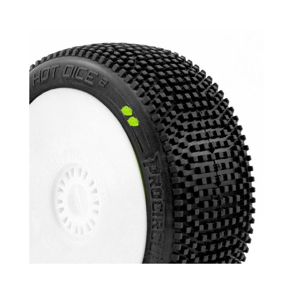 HOT DICES V2 BUGGY S2 (SOFT) ragasztott gumik, fehér tárcsák, 2 db.