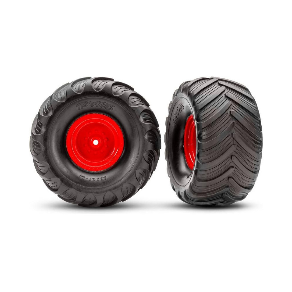 Traxxas kerék 2.0/3.0", piros eltolású 29mm felni, Terra Groove gumik (pár)