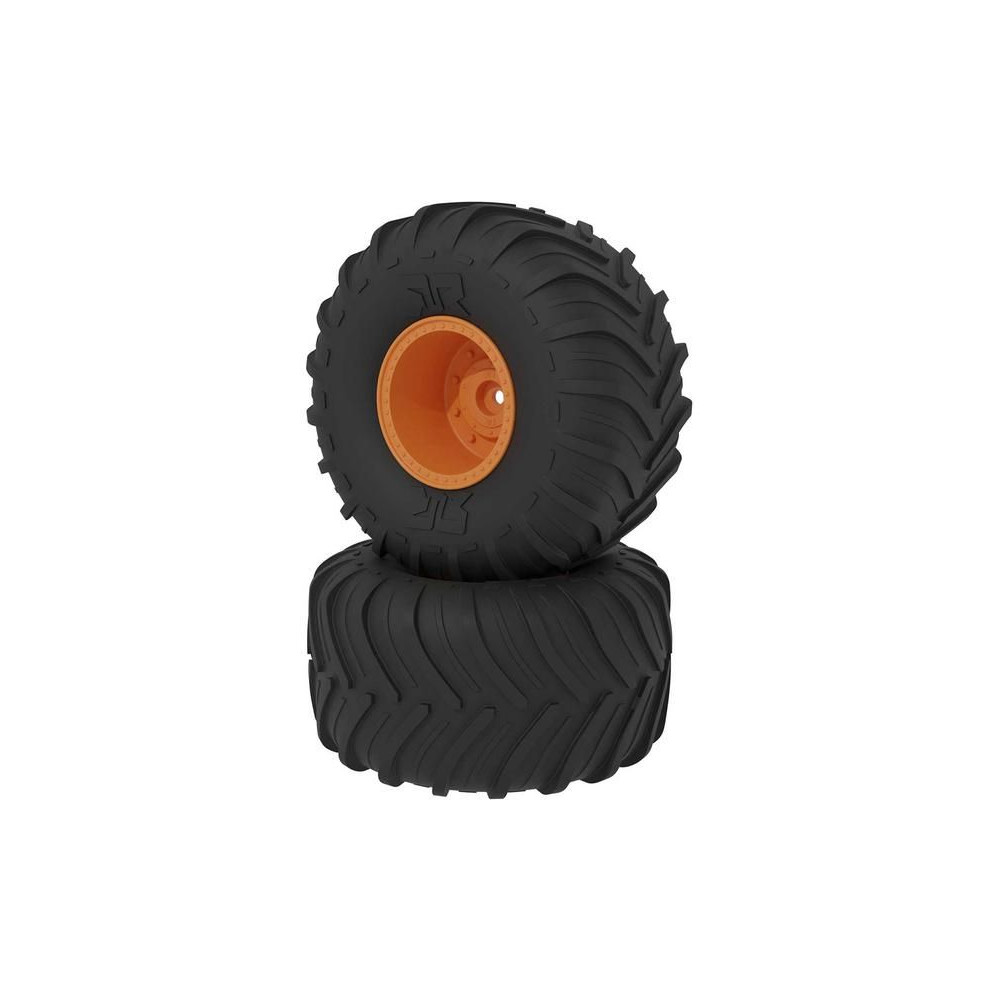 Komplett Arrma kerék Gorgon RC modellhez 1:10 arányban (2 db). Narancssárga tárcsafék. Minőségi dBoots Chevron MT gumik nagy tapadású és tartóssággal. A vezető egy 14 mm-es hatszögletű átmérőjű hajtókerék.