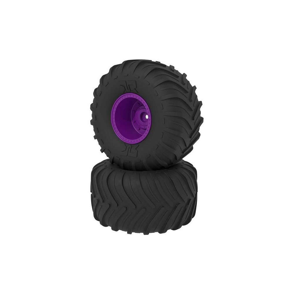 Komplett Arrma kerék Gorgon RC modellhez 1:10 arányban (2 db). Lila tárcsafék. Minőségi dBoots Chevron MT gumik nagy tapadású és tartóssággal. A vezető 14 mm-es hatszögletű.