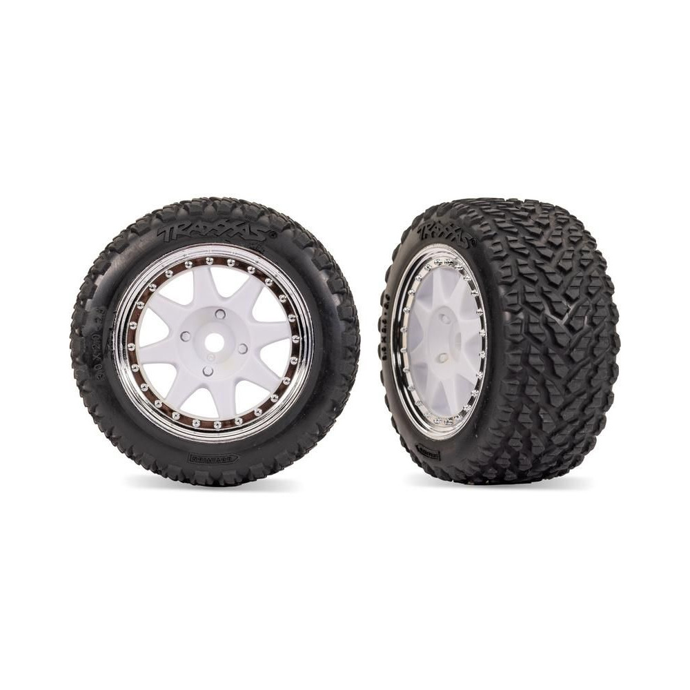 Komplett első kerekek a Traxxas Mini Rally RC autómodellhez. 8 küllős 2,5"-os tárcsa krómozott gyűrűvel. Rally gumiabroncsok elöl (2 db). Méretek ø76x51mm. Vezetőkar - 12 mm-es hatszögletű menet.
