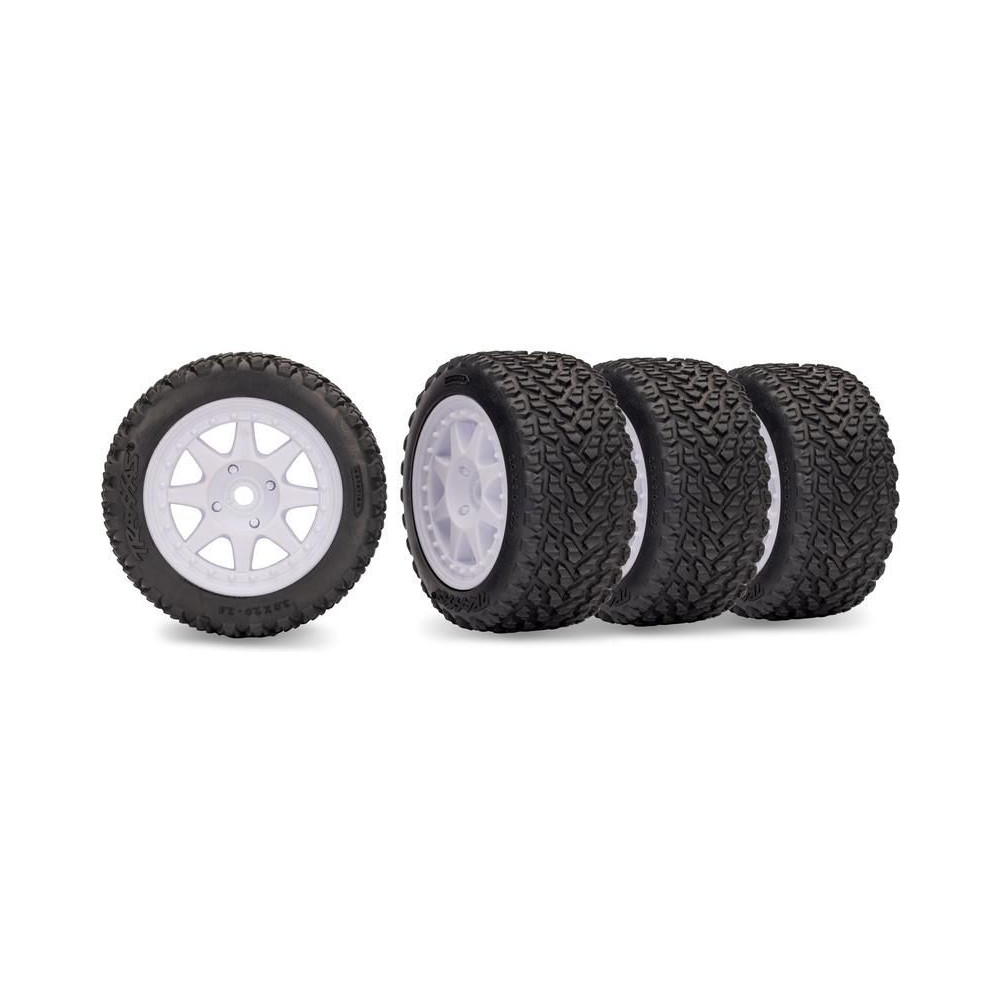 Komplett kerékszett a Traxxas Mini Rally RC autómodellhez. 8 küllős 2,5"-os tárcsa, Rally gumiabroncsok (2 db elöl, 2 db hátul). Méretek ø76x51mm. Vezetőkerék - 12 mm-es hatszögletű menet.