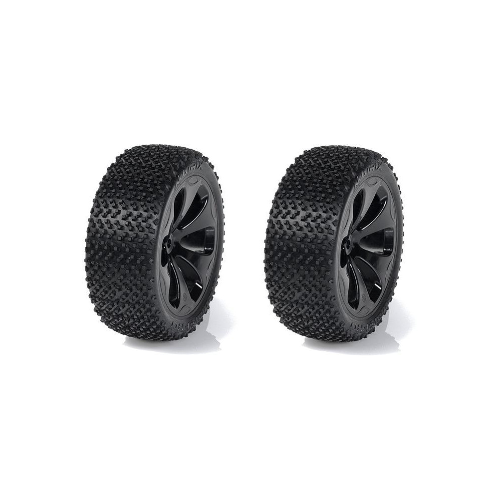 Komplett Medial Pro 3,3" Matrix kerekek Raptor tárcsával RC modellautókhoz. Kerékméret ø 84 x 42 mm, teljes méret ø 116 x 43 mm. A hordozó 12 mm-es hatszögletű, 24 mm-es eltolással. A tárcsa fekete színű, a gumiabroncs keverékének keménysége M4 - szuperlágy.
