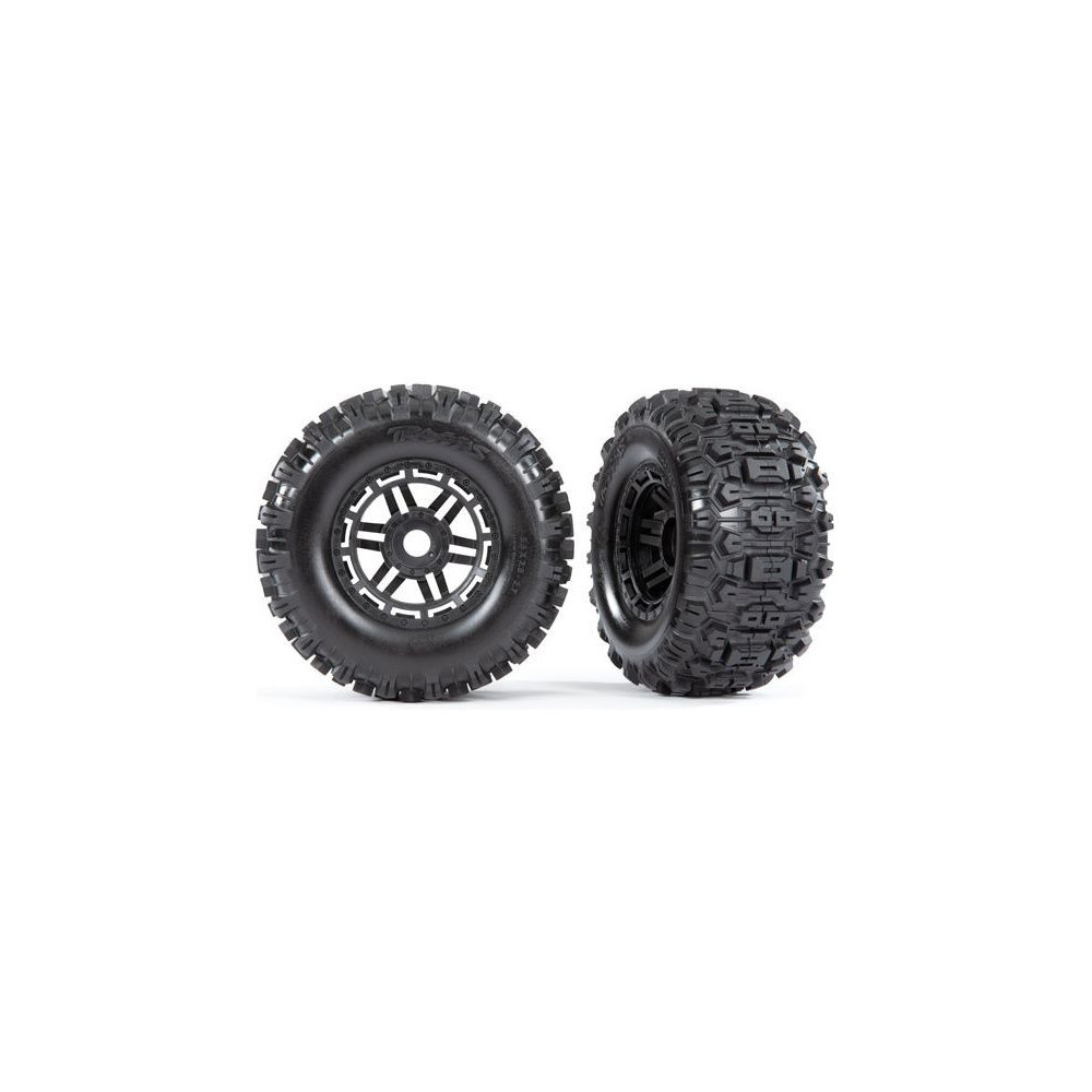 Traxxas kerék 2,8/3,6", fekete kerekek, Sledgehammer gumik (2) - A gumik extrém tapadást és irányíthatóságot biztosítanak a különböző terepeken. Tapadós gumik habbetéttel a felniken. 17 mm-es emelés.