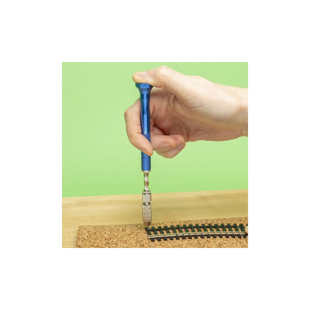 A Modelcraft fém mini fúrófejjel és fogóval ellátott fém minifúró ideális a nagyon kicsi fúrófejekhez, például a PDR4001 modellfúró készletekben található fúrófejekhez. Alumínium nyél, 2 fogó, fúrószár 0,8, 1,0, 1,2, 1,5, 1,8, 2,0, 2,2, 2,5, 2,8, 3,0mm. Nem alkalmas 0,8mm-nél kisebb fúrószárakhoz, a visszaforgató rugó vastagabb, mint az 1mm-ig terjedő fúrószáraknál.