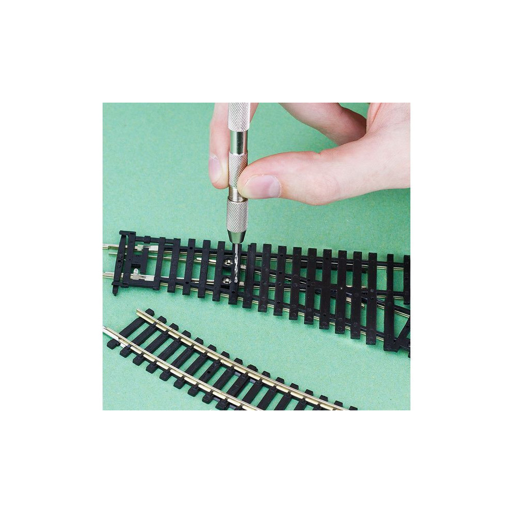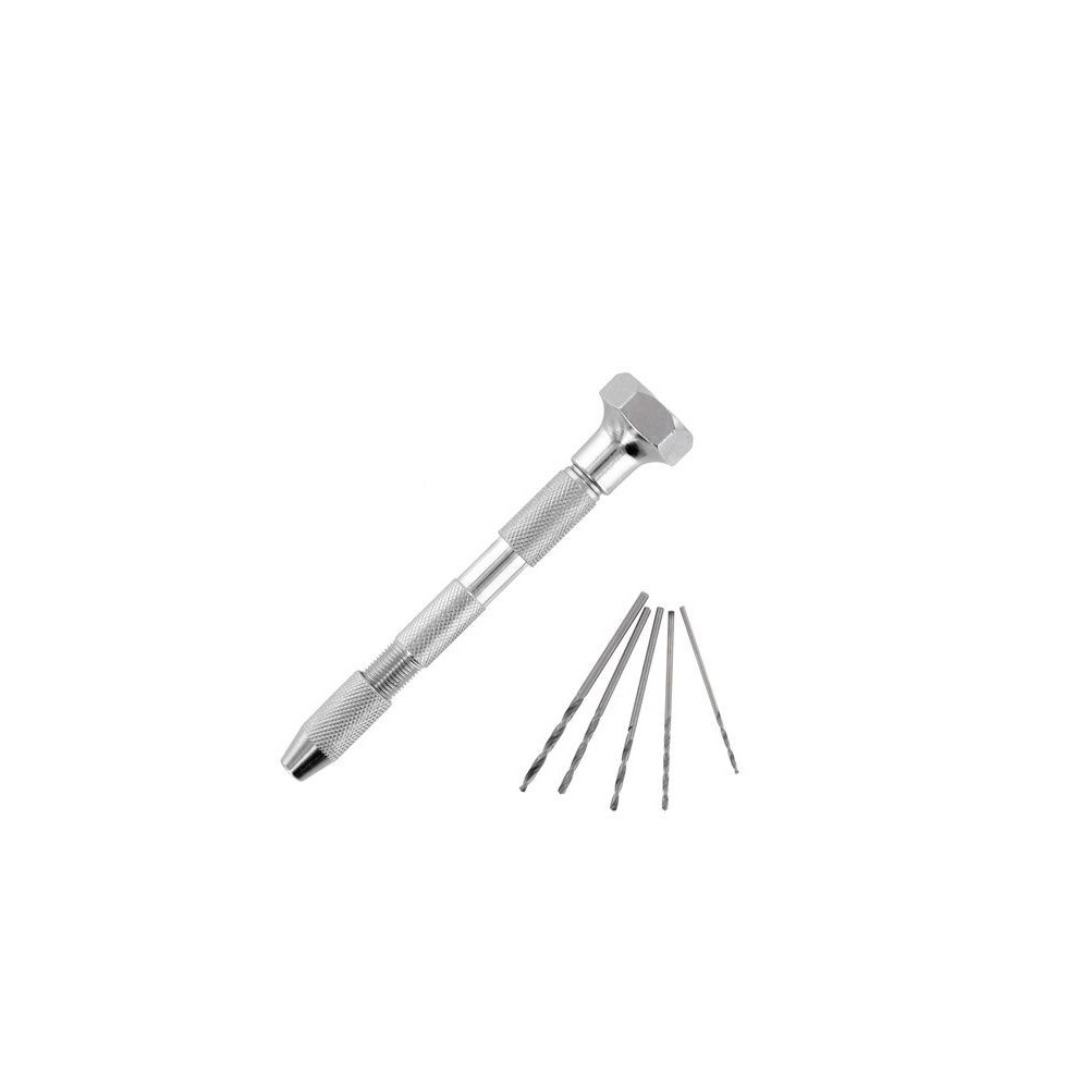 Modelcraft mini kézifúrógép 5 fúrószárral a precíziós munkákhoz kis fúrószárakkal. A csomagban 1 mm; 1,2 mm; 1,4 mm; 1,5 mm és 1,8 mm fúrószárak és 2 fogókulcs található 0-1,2 mm, & 1,3-2,4 mm és 0,8-2,0 mm, & 1,8-2,9 mm befogási tartományokkal. Forgatható fogantyú a kényelmes munkavégzéshez. Hossza 100mm, 10mm-es fogó.
