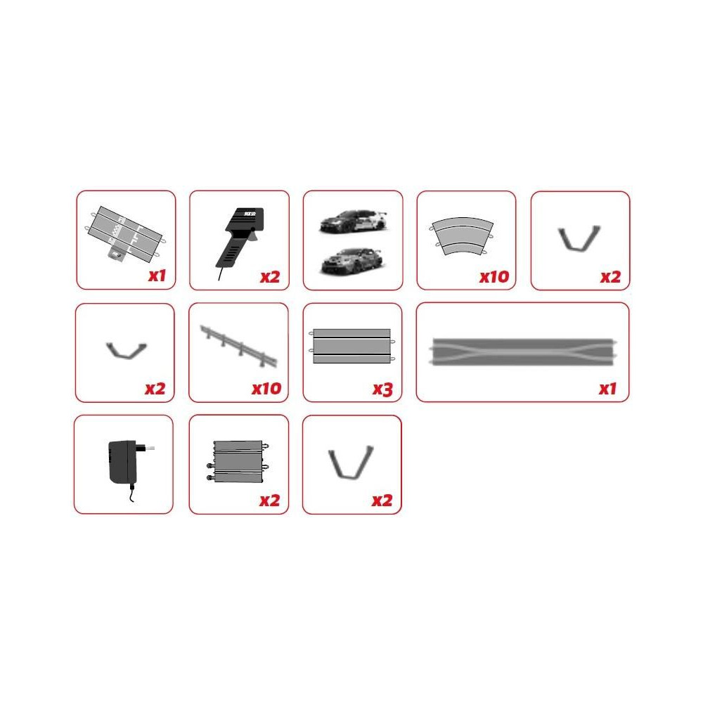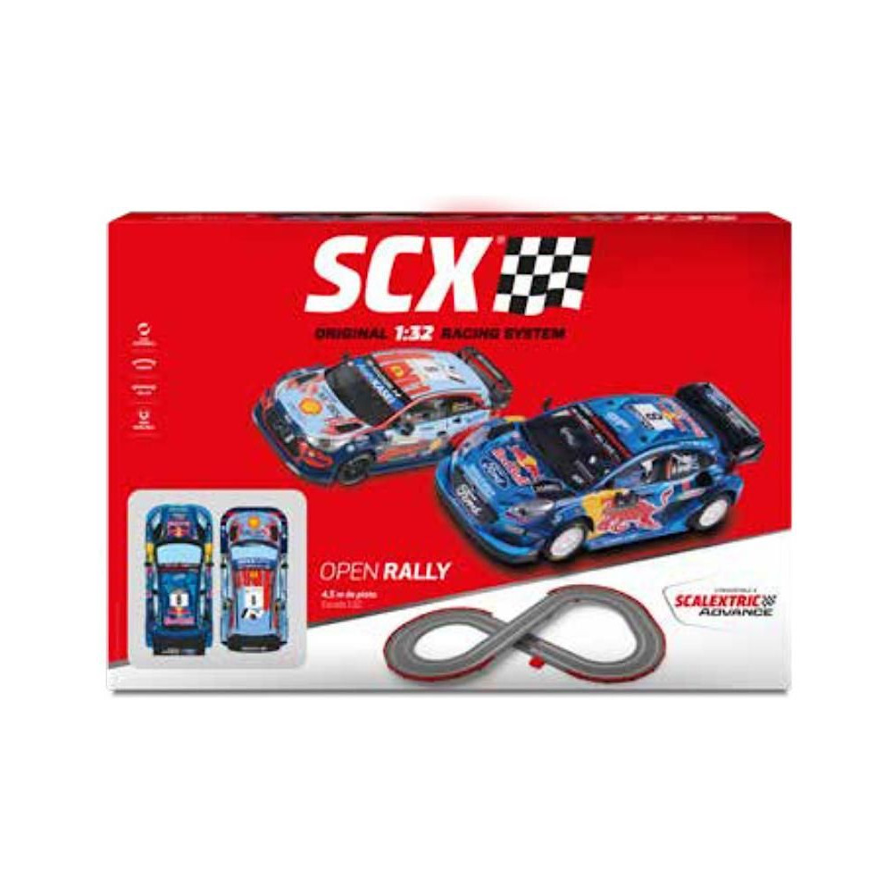 SCX Original Open Open Rally autópálya klasszikus 1:32 méretarányban - analóg autópálya egyenesekkel, kanyarokkal, hosszú híddal, sikánnal, átalakító alkatrészekkel és védőkorlátokkal. A csomag tartalmaz két ergonomikus, érzékeny gázkarral vezérlőt, két részletesen kidolgozott Ford Puma Rally WRC és Hyundai i-20 WRC pályaautót kiváló vezetési jellemzőkkel. 233 x 77 cm. Pálya hossza: 5,2 m. A pálya nagyon könnyen összeszerelhető, össze kell kattintani a pálya részeit, csatlakoztatni a versenyzőket és már indulhat is a versenyzés.