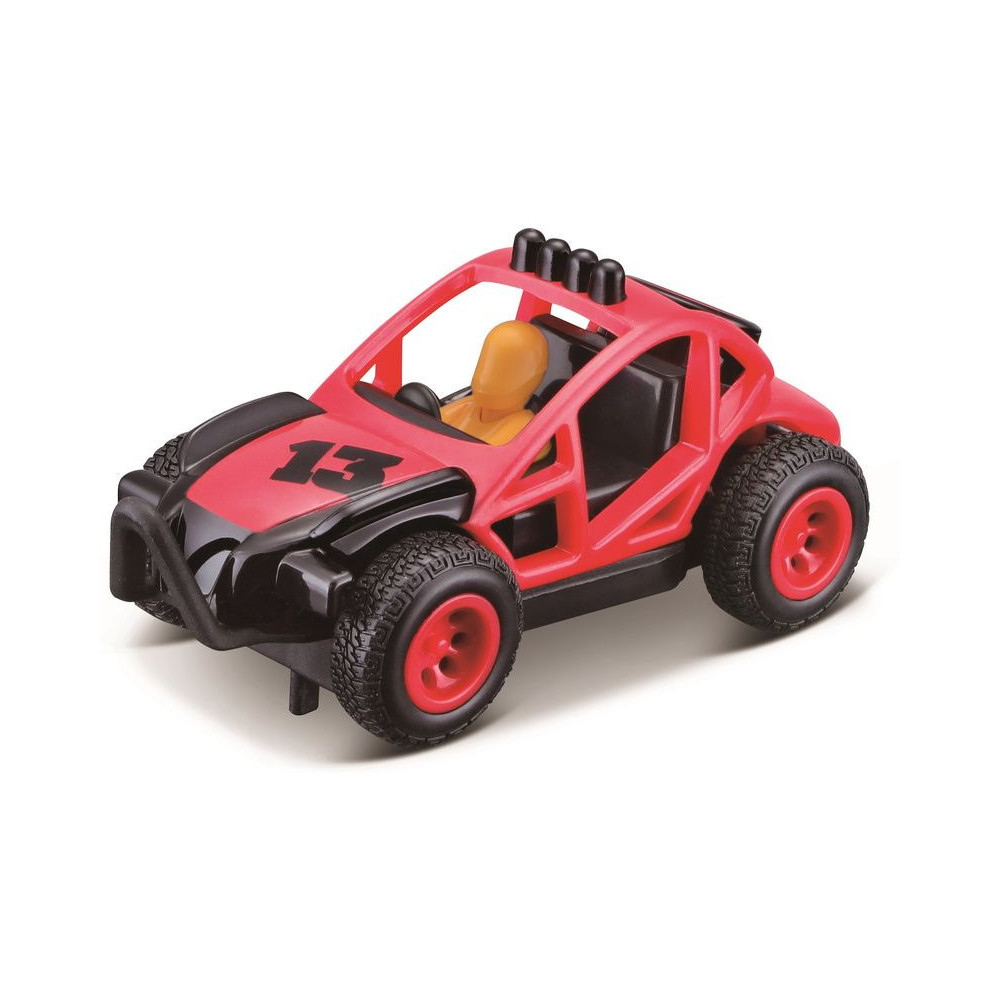 A rallyautó pálya barna színű pályarészei kavicsot imitálnak, mint a valódi rallyversenyeken. A pálya tele van szórakoztató funkciókkal: ugrások, szűkületek, kereszteződések és terephullámok. A környező táj is megjelenik sziklák formájában. Az autók sebességét a pályához csatlakozó, jack-csatlakozóval ellátott kábellel csatlakoztatott vezérlők szabályozzák. A pályaautók a Buggy Rally kivitelben szerepelnek.