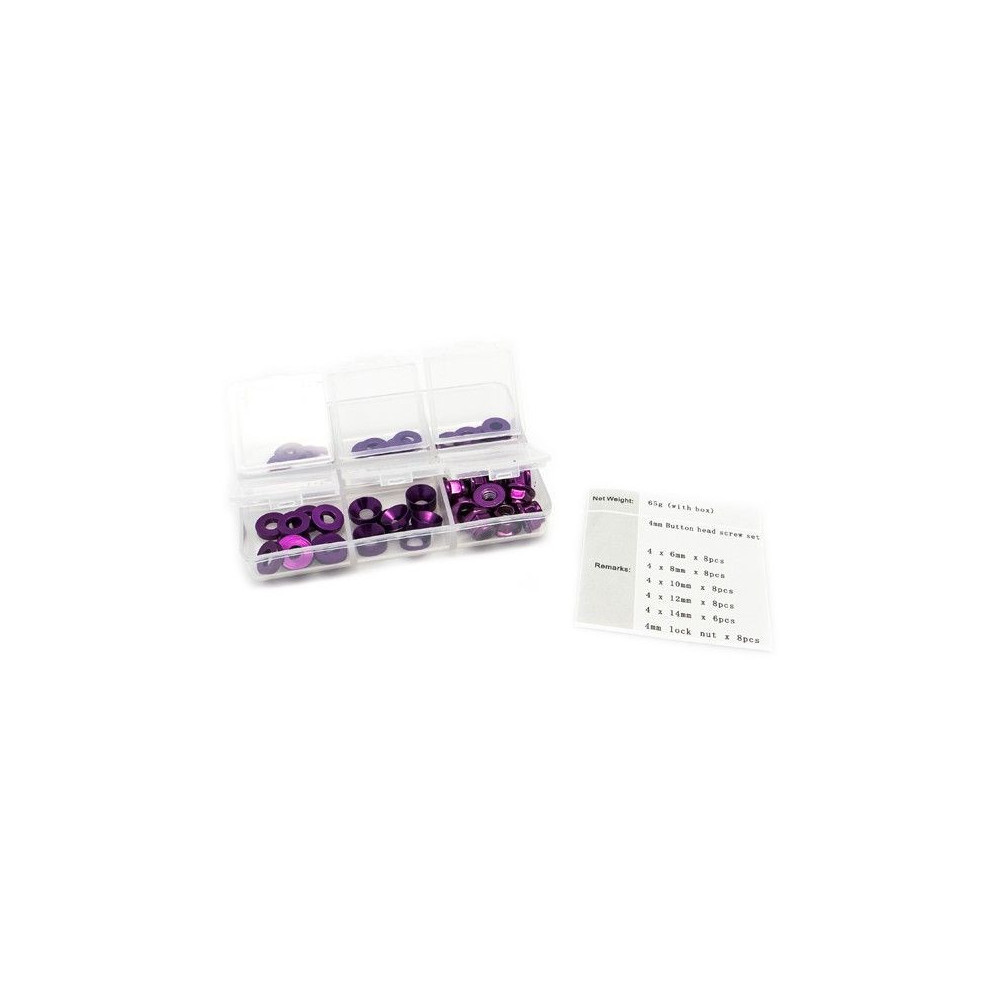 4mm alátétkészlet lila (6mm/8mm/10mm/10mm/10mm/12mm/14mm) plusz M4 anya műanyag dobozban