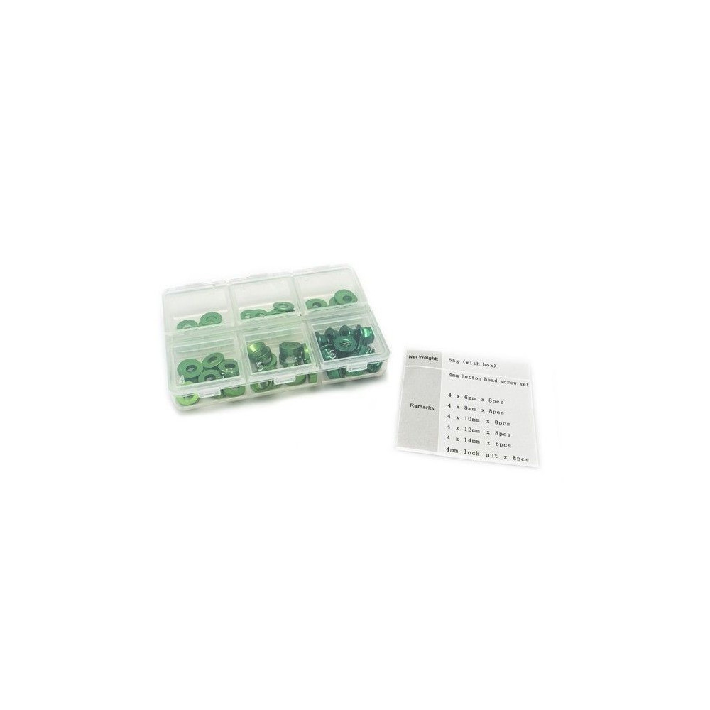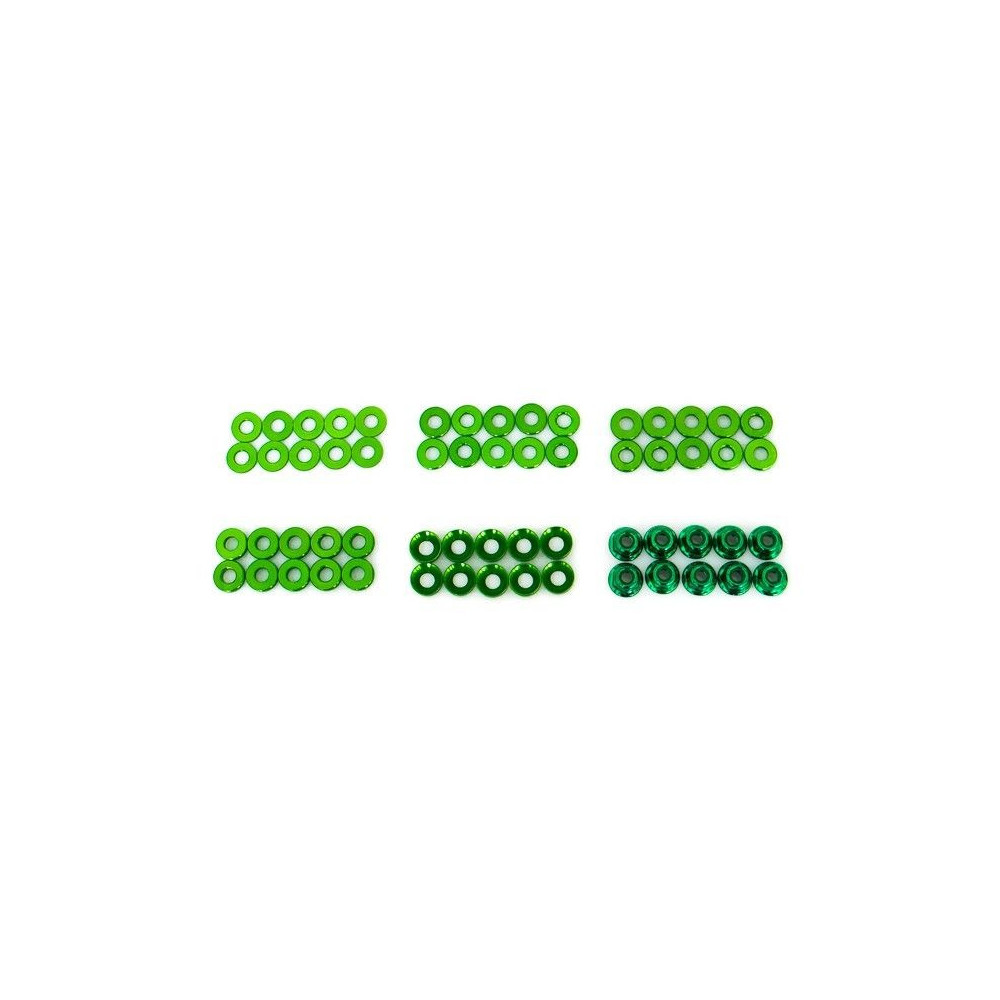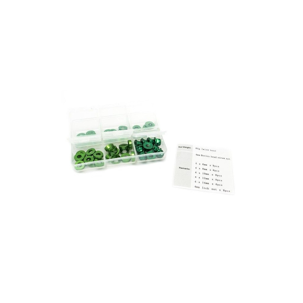 4mm zöld alátétkészlet (6mm/8mm/10mm/12mm/14mm) és M4 anyák műanyag dobozban