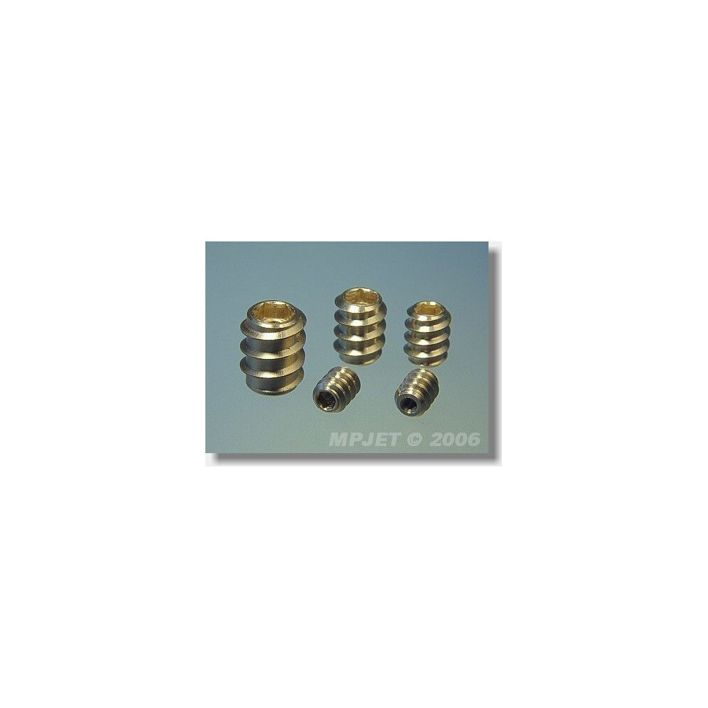 Belső hatszögletű menetes betétek (imbuszkulcshoz) menetes csatlakozás létrehozásához olyan esetekben, amikor szerkezeti okokból nem lehetséges a szabványos rögzítő- vagy vésőanyák használata. Anyag: sárgaréz, menet: M5, külső átmérő: 9 mm, hossz: 12 mm.