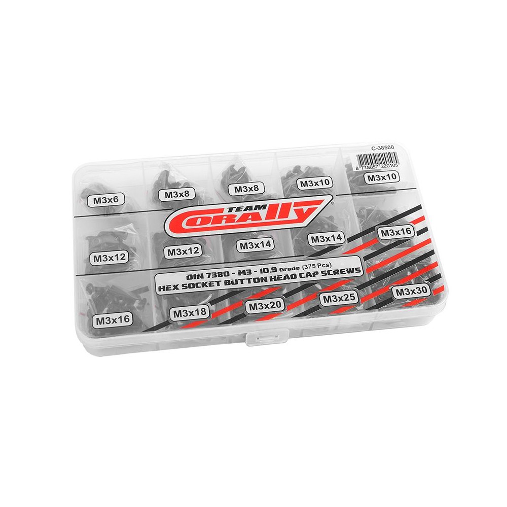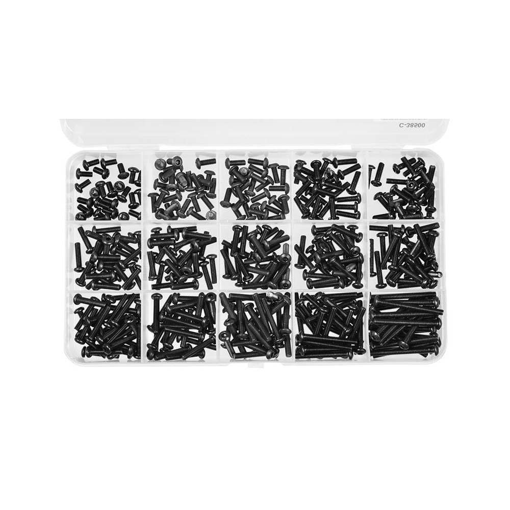 Inbus hatlapfejű csavarok - készlet/doboz - M3 - fekete acél, 375 db.