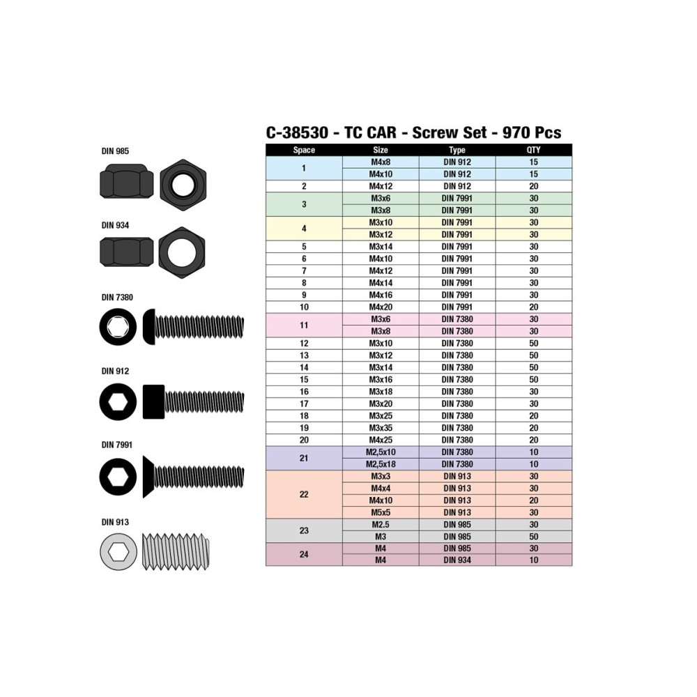 Anyacsavar és Inbusz csavar - szett/box - M2,5-től egészen M5-ig - acél, fekete, 970 db.