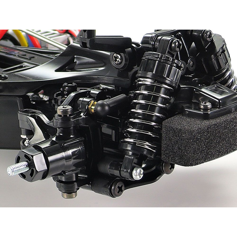 Skvelý výkon RR z modelu M-06Podvozok modelu M-06 má vzadu namontovaný motor, zadný pohon a pozdĺžne uloženú batériu, pričom R/C vybavenie je umiestnené na oboch stranách pre optimálne vyváženie a nízke ťažisko. Dvojité zavesenie 4 kolies využíva pokovované kolesá, ktoré sú vpredu vybavené radiálnymi pneumatikami 60D a vzadu pneumatikami 60D Super Grip. Okrem toho 3-dielny záves riadenia ponúka svižné reakcie na ovládanie. |
