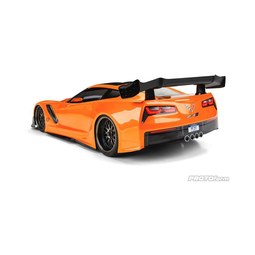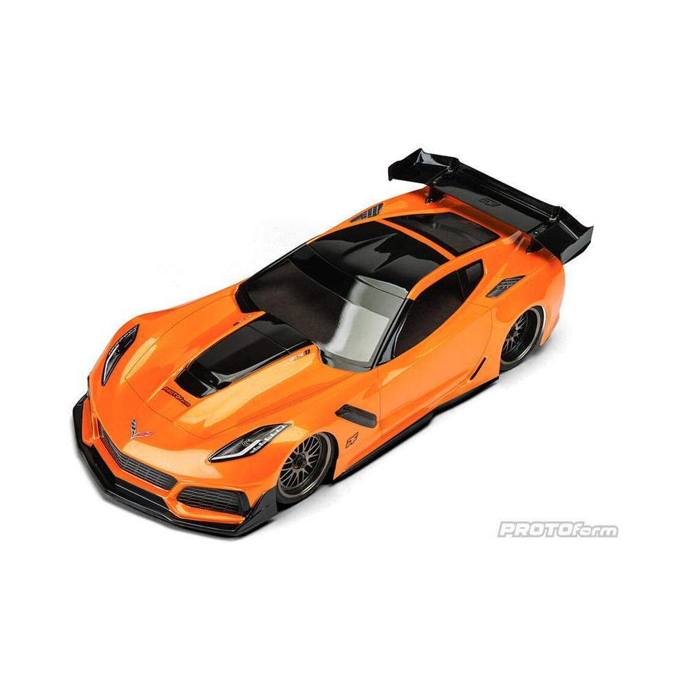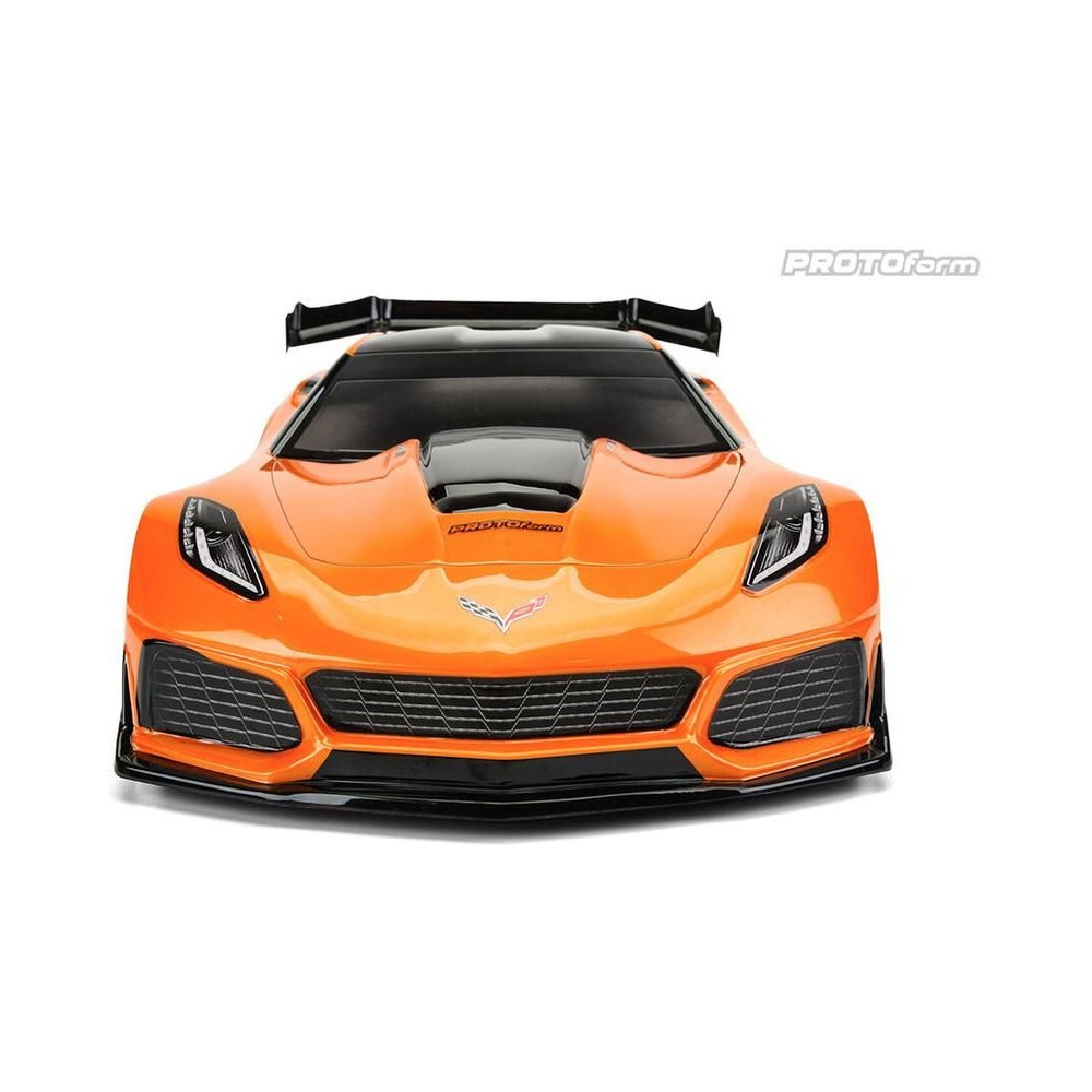 Karosszéria Protoform clear Chevrolet Corvette ZR1 LW: 190mm Touring Car, RC autó modellekhez 1:10. Tengelytáv 256mm, hossz 444mm, szélesség 194mm. Tartós lexanból készült, szerelési kiegészítőkkel.