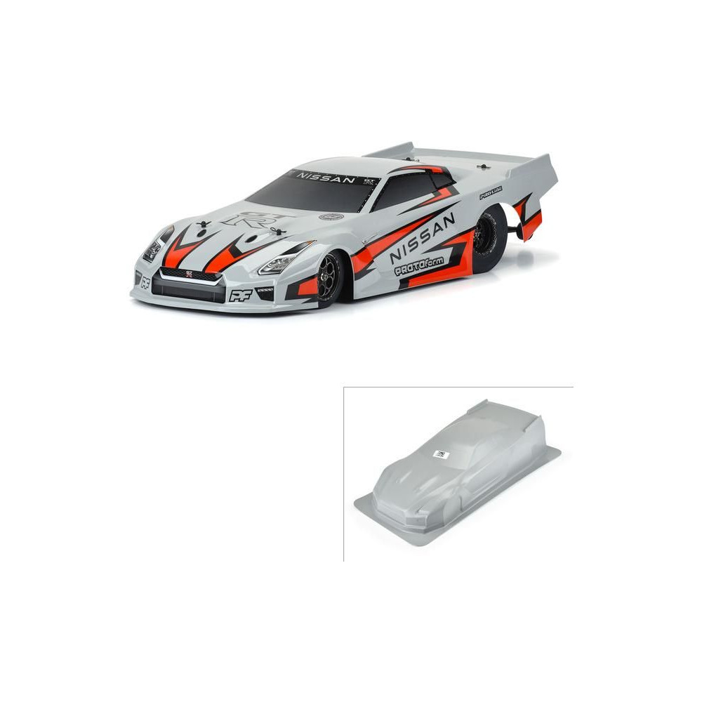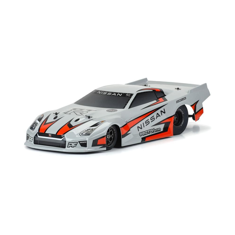PROTOform karosszériakészlet 1:10 méretarányú Nissan GT-R R35 Pro szürke színben: drag car. A Tough-Color polikarbonát szürke anyagból készült, amelyet a mellékelt matricák díszítenek, beleértve az ablakokat is. A hivatalosan engedélyezett karosszéria tökéletes aerodinamikai frissítés a Losi® 22S™ No Prep Drag Car vagy más 1:10-es, 13,2" tengelytávú autóhoz. Jellegzetes, széles hűtőrácsot, oldalsó légbeömlő nyílásokat és erőteljes R35 GT-R™ dizájnt tartalmaz, dragster versenyzői arányokkal, amelyek autóját egy felturbózott fenevaddá változtatják.