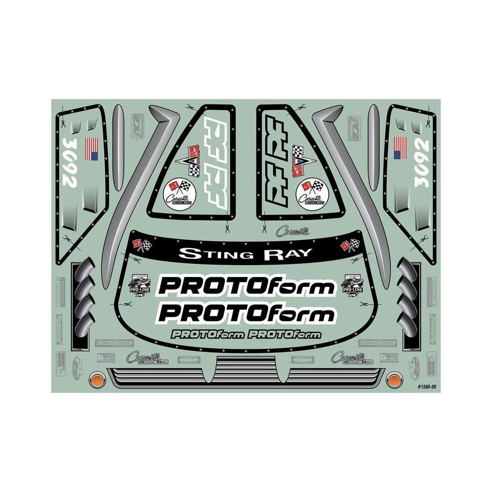 Tiszta, festetlen karosszéria A PROTOform Chevrolet Corvette Corvette Stingray Pro Mod 1963-ból, 1:10 méretarányban, 335 mm-es tengelytávú RC autókhoz ajánlott. Tartalmaz egy hátsó spoilert is a rögzítő tartozékokkal. Tartalmazza a részletes matricalapot és az ablakmaszkokat.