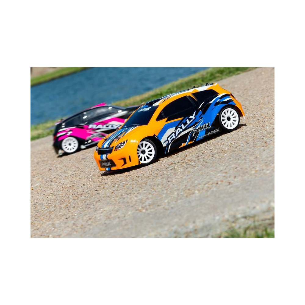 A Traxxas Rally 1:18 egy megfizethető árú RC modellautó távirányítóval. Kiváló minőségű Traxxas, 4WD, 2,4 GHz-es RC készlet, vízálló vezérlő és szervokormány, 370-es sorozatú DC motoros meghajtás, 30 km/h sebességig. NiMH 6V-os 1200mAh kapacitású akkumulátorral meghajtva.