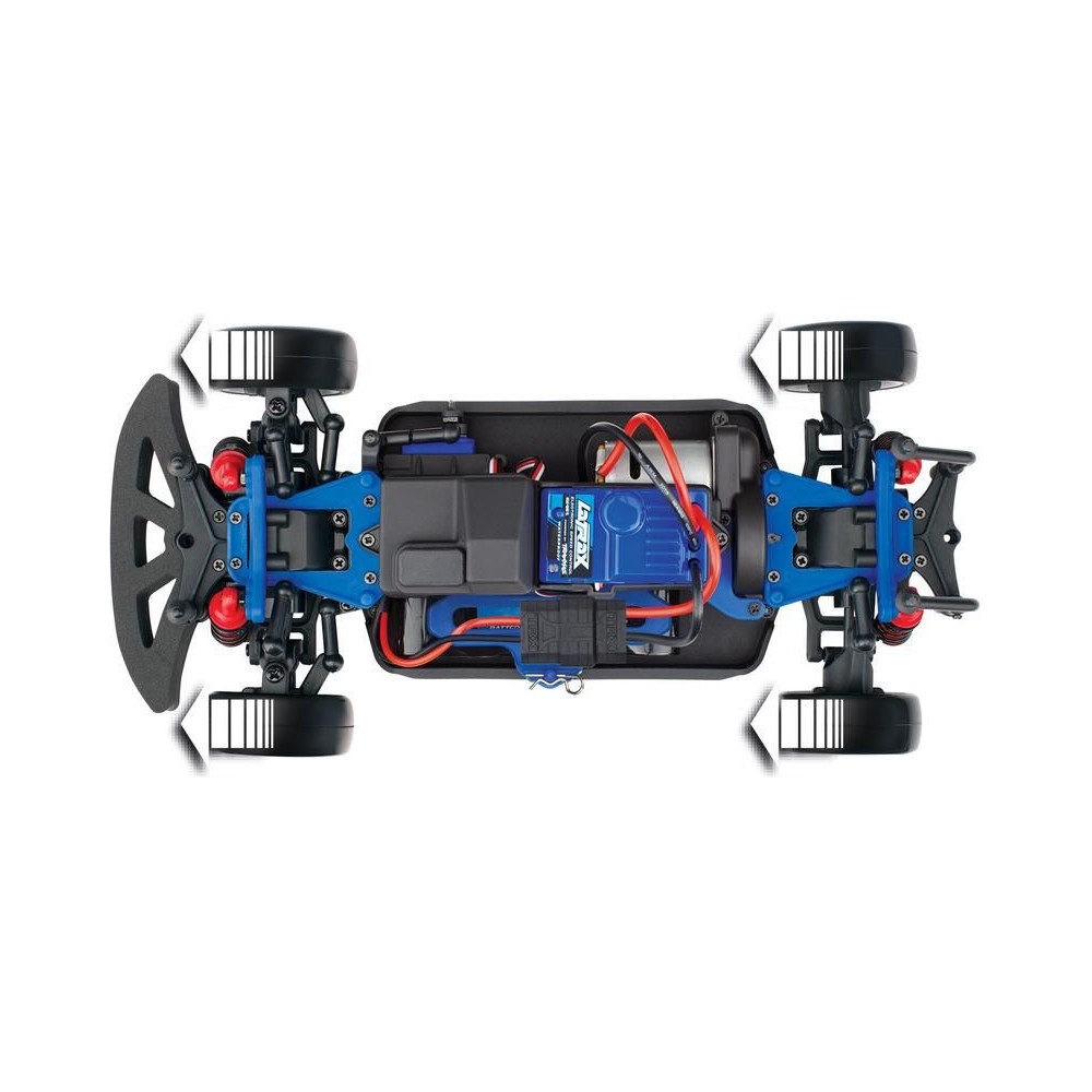 A modellt a LaTrax TQ 2 csatornás, arányos kormánykerék RC-készlet vezérli a 2,4 GHz-es sávban - interferenciamentes működés. Az adó mindössze 4 AA elemmel működik, opcionálisan újratölthető NiMH akkumulátorokat is használhat.