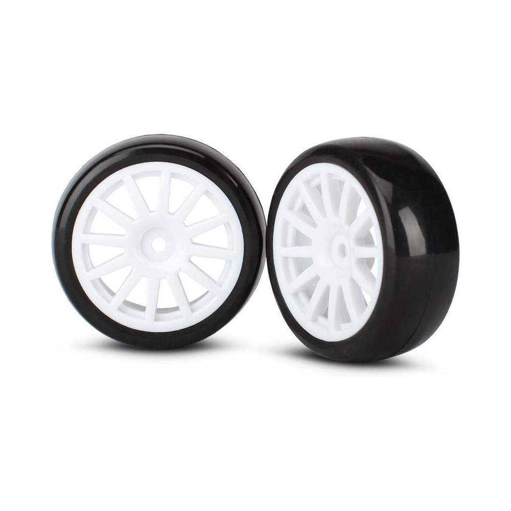 Komplett univerzális kerekek LATrax Rally 1:18 RC autókhoz. 12 küllős fehér tárcsa, slick...