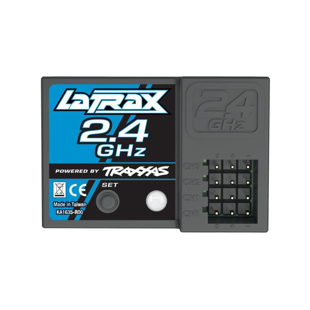 A Latrax háromcsatornás 2,4 GHz-es vevője biztonságos, megszakításmentes vezetést biztosít. Egyszerű, egygombos párosítás. LED-es állapotjelzés.