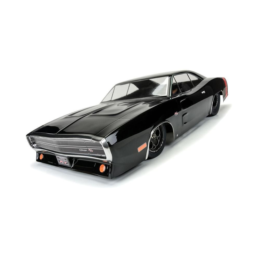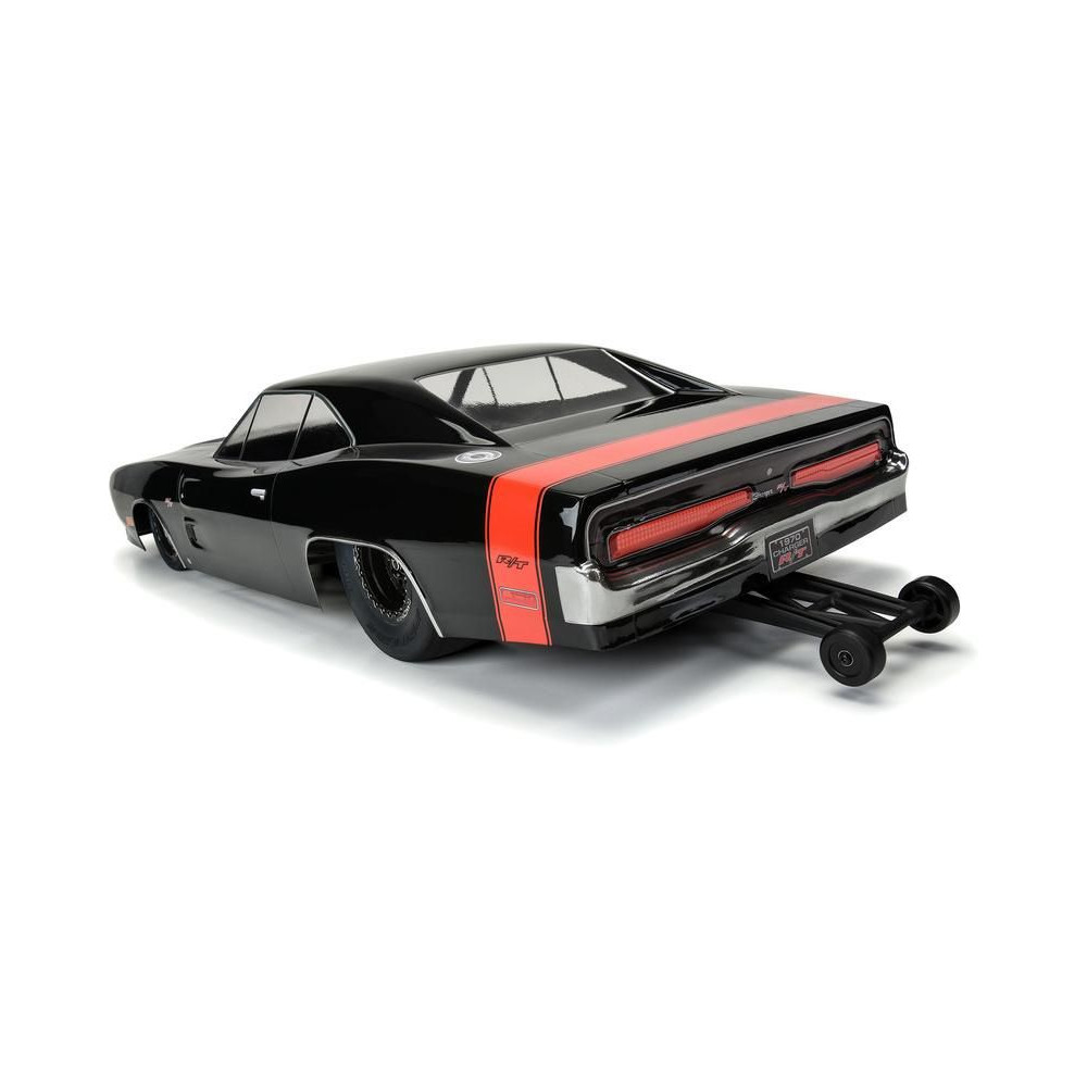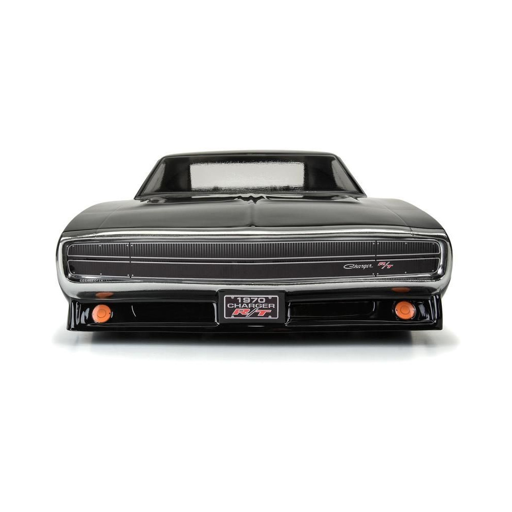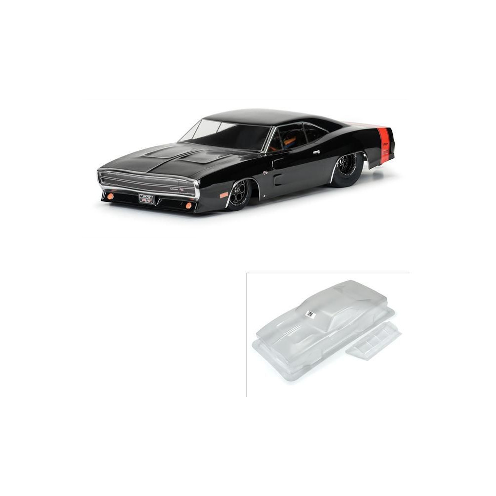 Pro-Line karosszéria - az amerikai izomautó, a legendás drag car Dodge Charger 1970-es évjáratának valódi stílusa, 1:10 méretarányú RC modellautókhoz. Tengelytáv 335mm, hossz 622mm, magasság 137mm. Tartós, átlátszó lexánból készült, kiegészítő spoilerrel együtt.