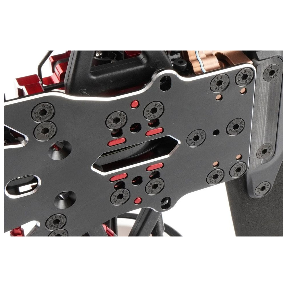 Mostantól frissített és optimalizált lengéscsillapító felfüggesztéssel és szénszálas lengőkarral rendelkezik, amely csökkenti a kanyarodás közbeni dőlést. Az alváz válaszfalain, a motortartókon és a lengéscsillapító házon található új pozicionáló csapok nemcsak a tartósságot növelik, hanem lehetővé tették számunkra ezen alkatrészek átdolgozását és könnyítését is, így összesen több mint 25 g-ot takarítottunk meg.