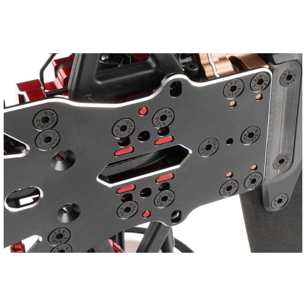 Mostantól frissített és optimalizált lengéscsillapító felfüggesztéssel és szénszálas lengőkarral rendelkezik, amely csökkenti a kanyarodás közbeni dőlést. Az alváz válaszfalain, a motortartókon és a lengéscsillapító házon található új pozicionáló csapok nemcsak a tartósságot növelik, hanem lehetővé tették számunkra ezen alkatrészek átdolgozását és könnyítését is, így összesen több mint 25 g-ot takarítottunk meg.