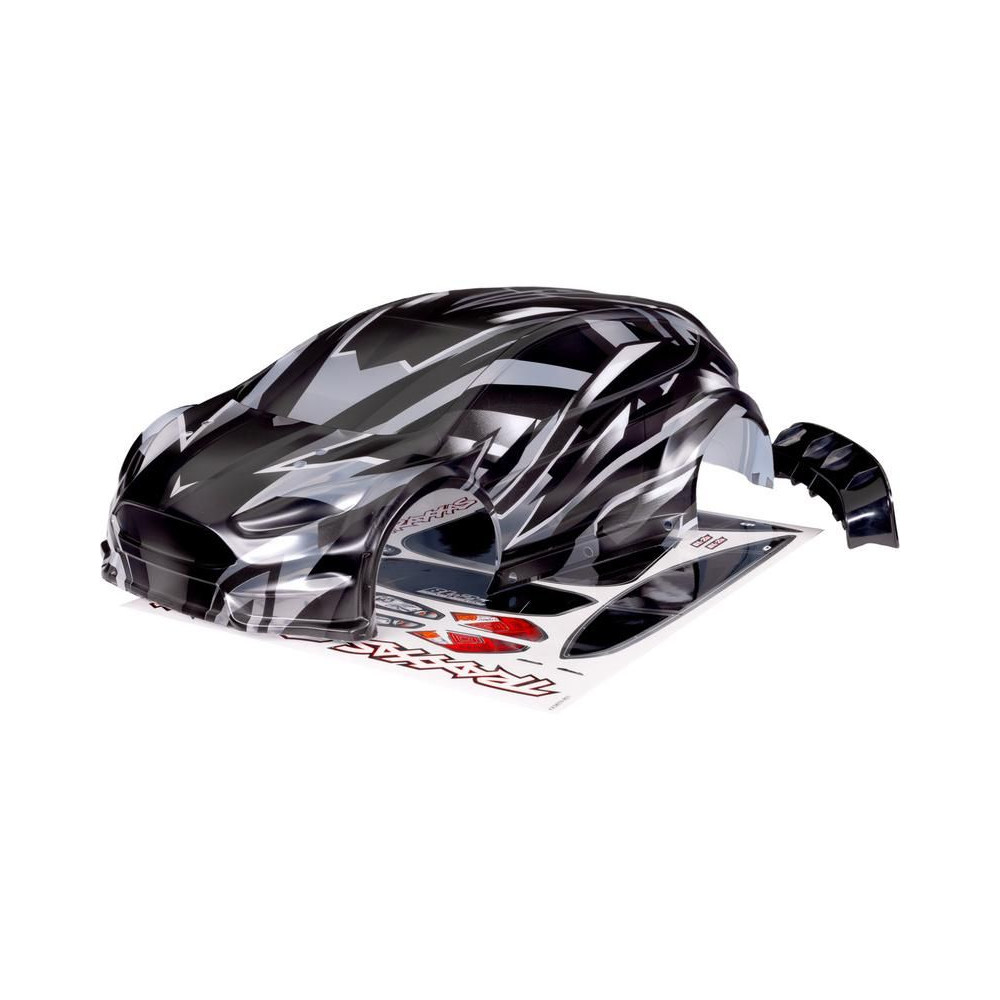 Traxxas Ford Fiesta ST Rally Brushless ProGraphix karosszéria - előre nyomtatott grafikával az egyszerű festéshez. Válassza ki a saját színkonfigurációját professzionális eredményekkel. A karosszéria teljes mértékben trimmelt, előfúrt lyukakkal. Védő overspray fóliát alkalmazunk.