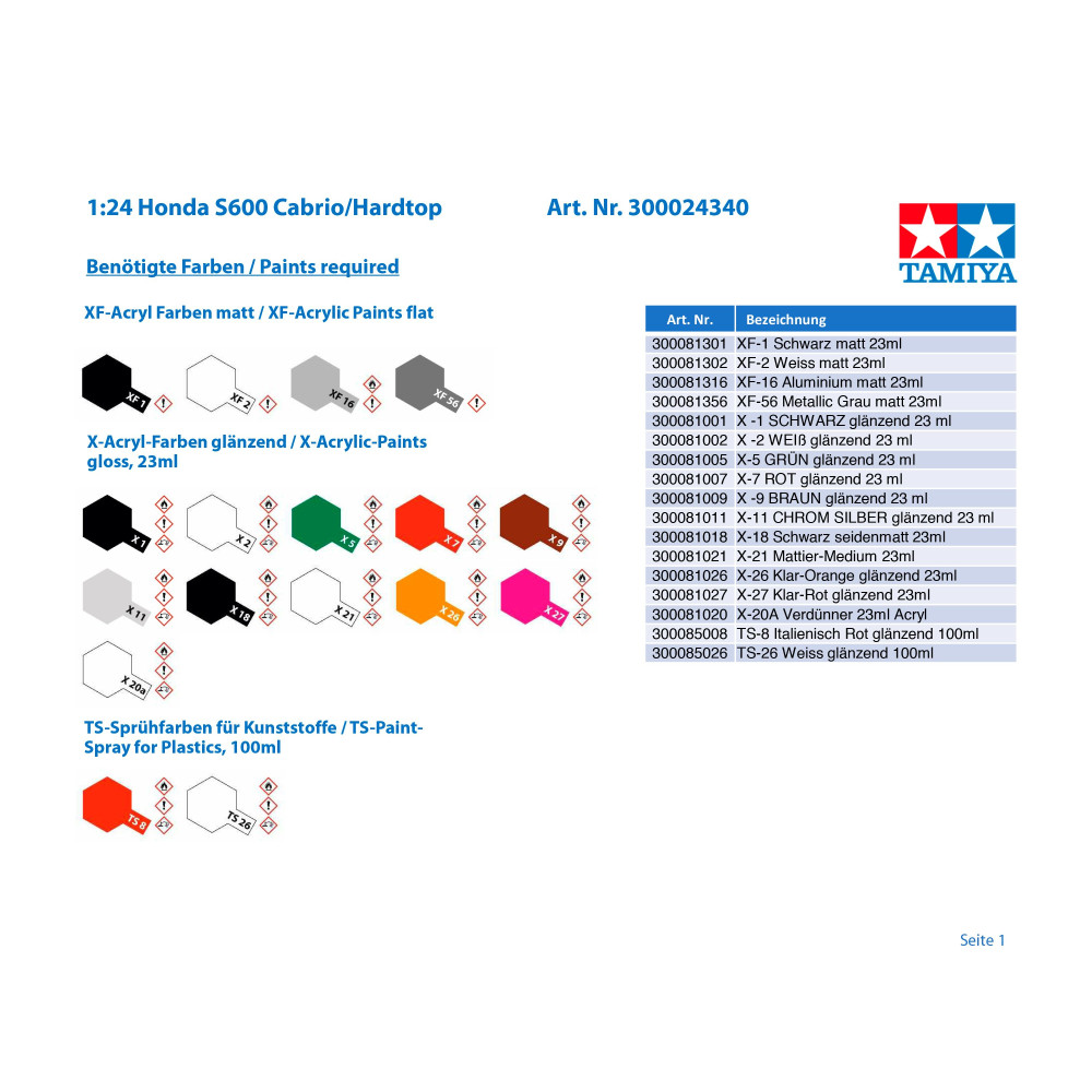 Tamiya 1:24 Honda S600 Cabrio/Hardtop