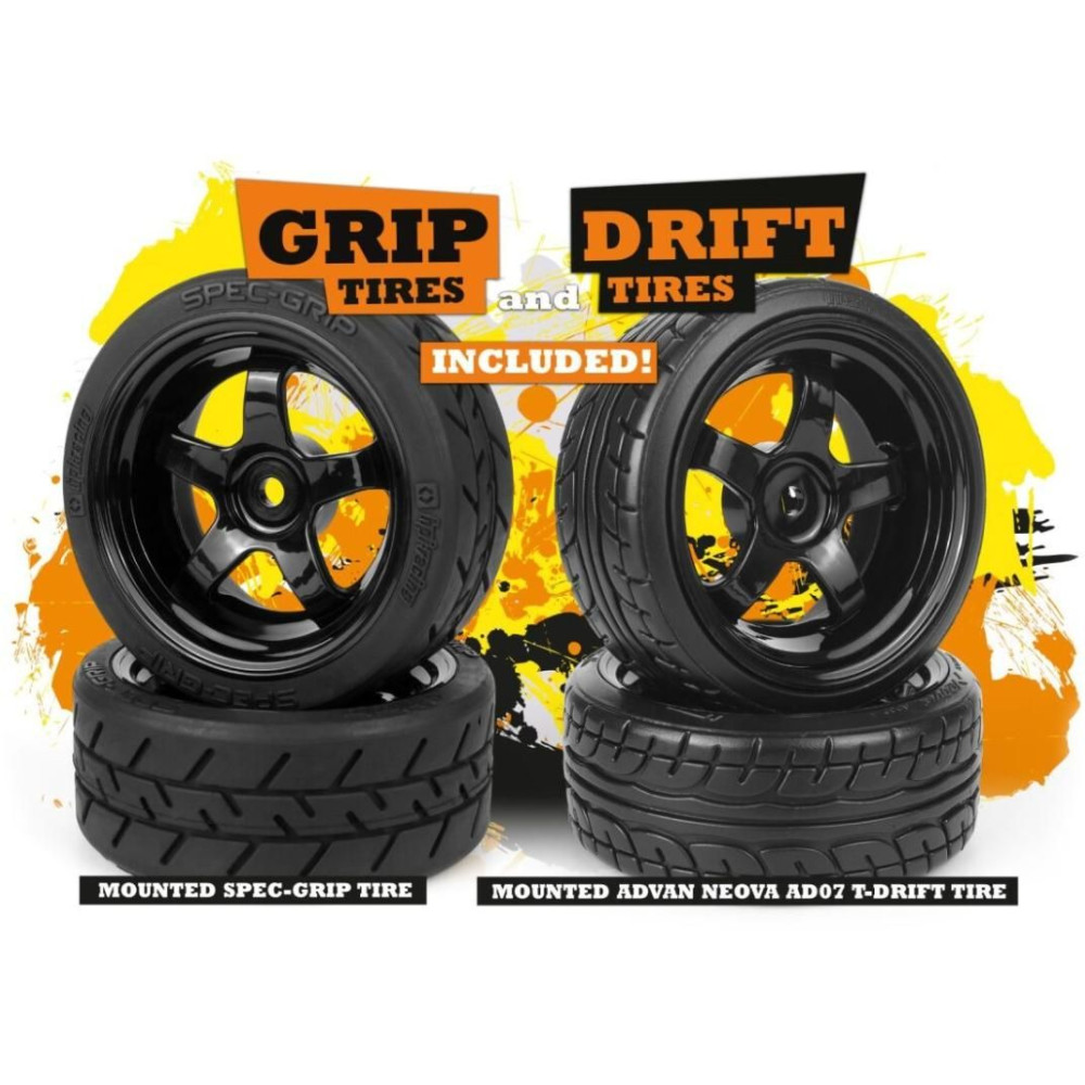 De itt sem álltunk meg - nem egy, hanem KÉT garnitúra gumiabroncsot is mellékeltünk, így választhatsz, hogy driftelni vagy gyorsan "tapadósan" akarsz menni a pályán vagy az utcán! Ez teljesen rajtad múlik!