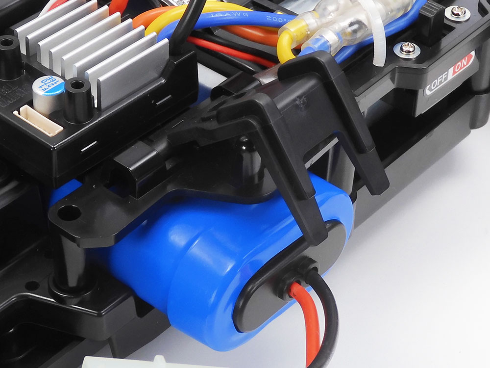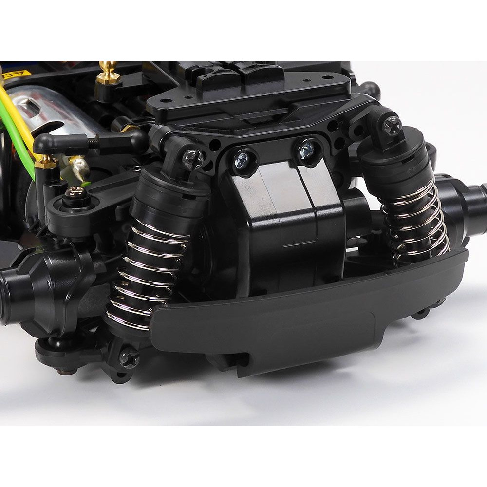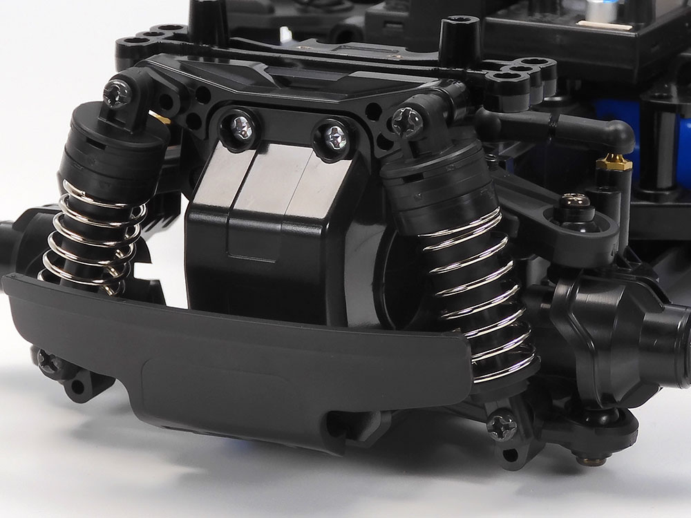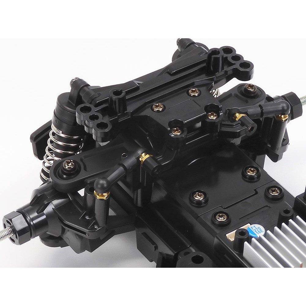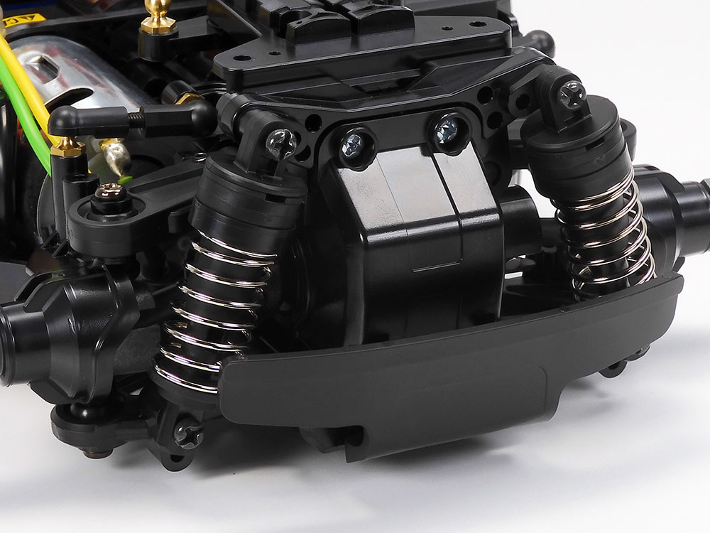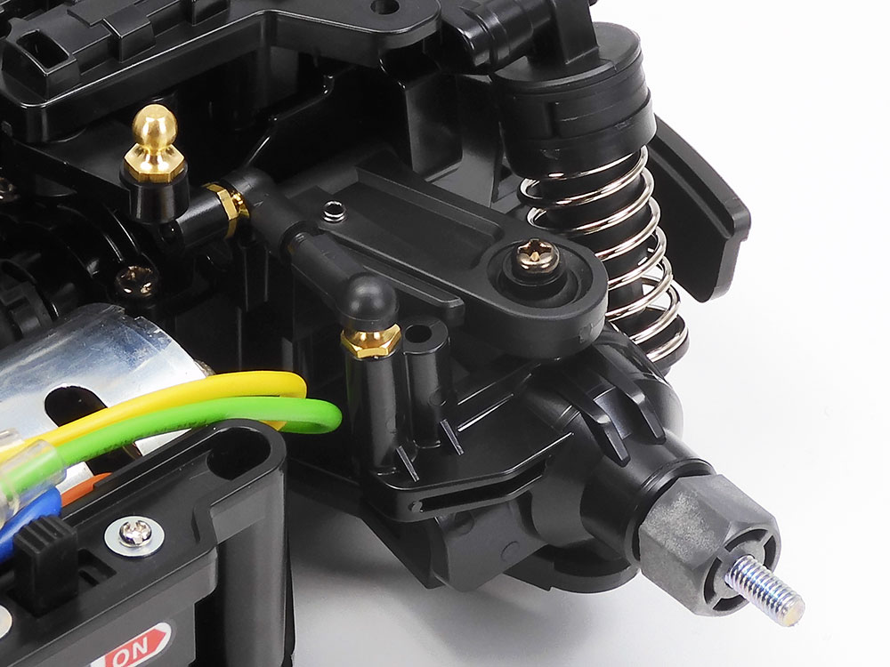 A kompakt, 2WD MB-01 alváz három tengelytáv és első- vagy hátsókerék-hajtás közül választhat. Ez a modell elsőkerék-meghajtást használ. A négykerék-meghajtású, kettős lengőkaros felfüggesztés szimmetrikus szerkezettel és súrlódásos lengéscsillapítókkal rendelkezik. Az olyan egységet alkotó alkatrészek, mint a motortartó bakok, a végső hajtások és a felfüggesztés, megkönnyítik az összeszerelést és a hatékony karbantartást. Továbbá anélkül, hogy el kellene távolítani az akkumulátort, a motort és az távirányítós berendezések beállításait a középső vázról, egyszerűen megváltoztathatja a végső meghajtások és a kormányösszekötő rudazatának rögzítési irányát az első és a hátsókerék-hajtás közötti váltáshoz; Hátsókerék-meghajtású autók esetén alacsony vagy magas motorfokozat választható.