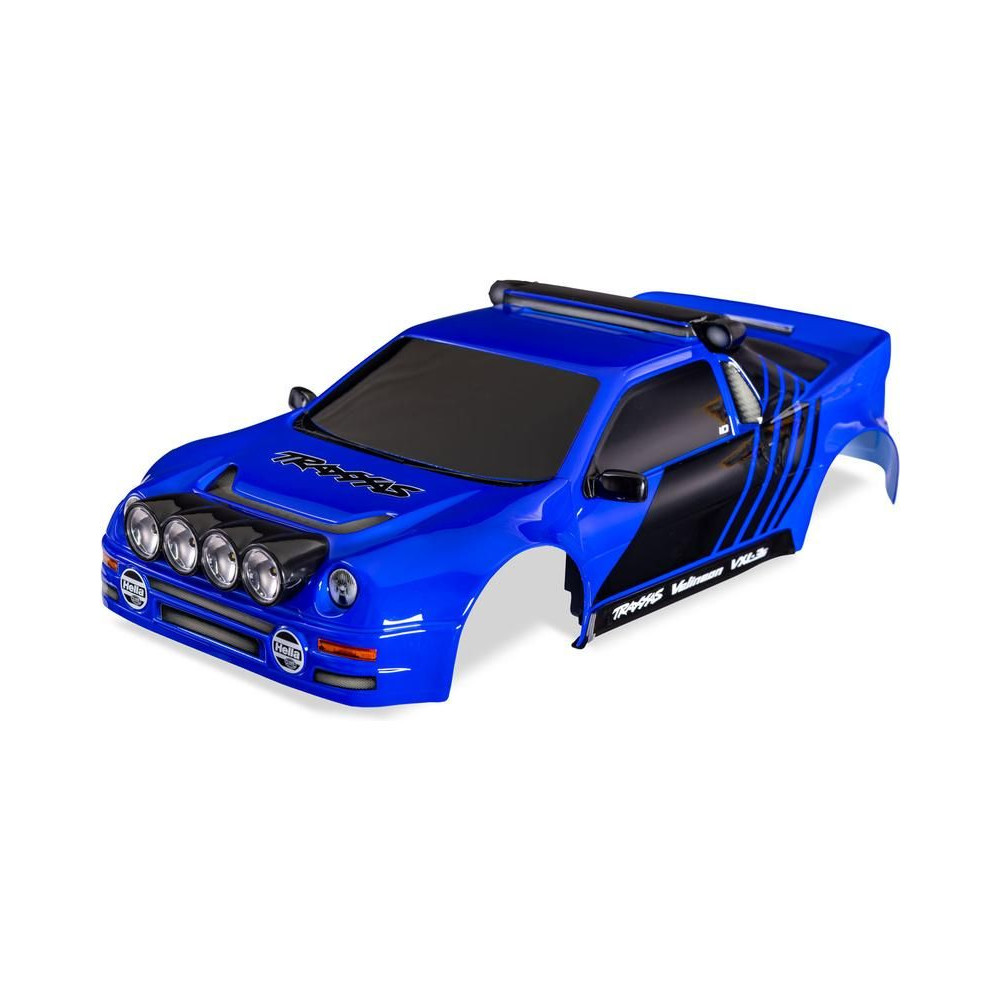 Traxxas karosszéria Ford RS200 kék. Kész, festett és összeszerelt karosszéria ragasztott matricákkal. Tartalmazza a rögzítőelemeket, parabolafényeket, oldalsó tükröket, küszöböket és szívónyílásokat.