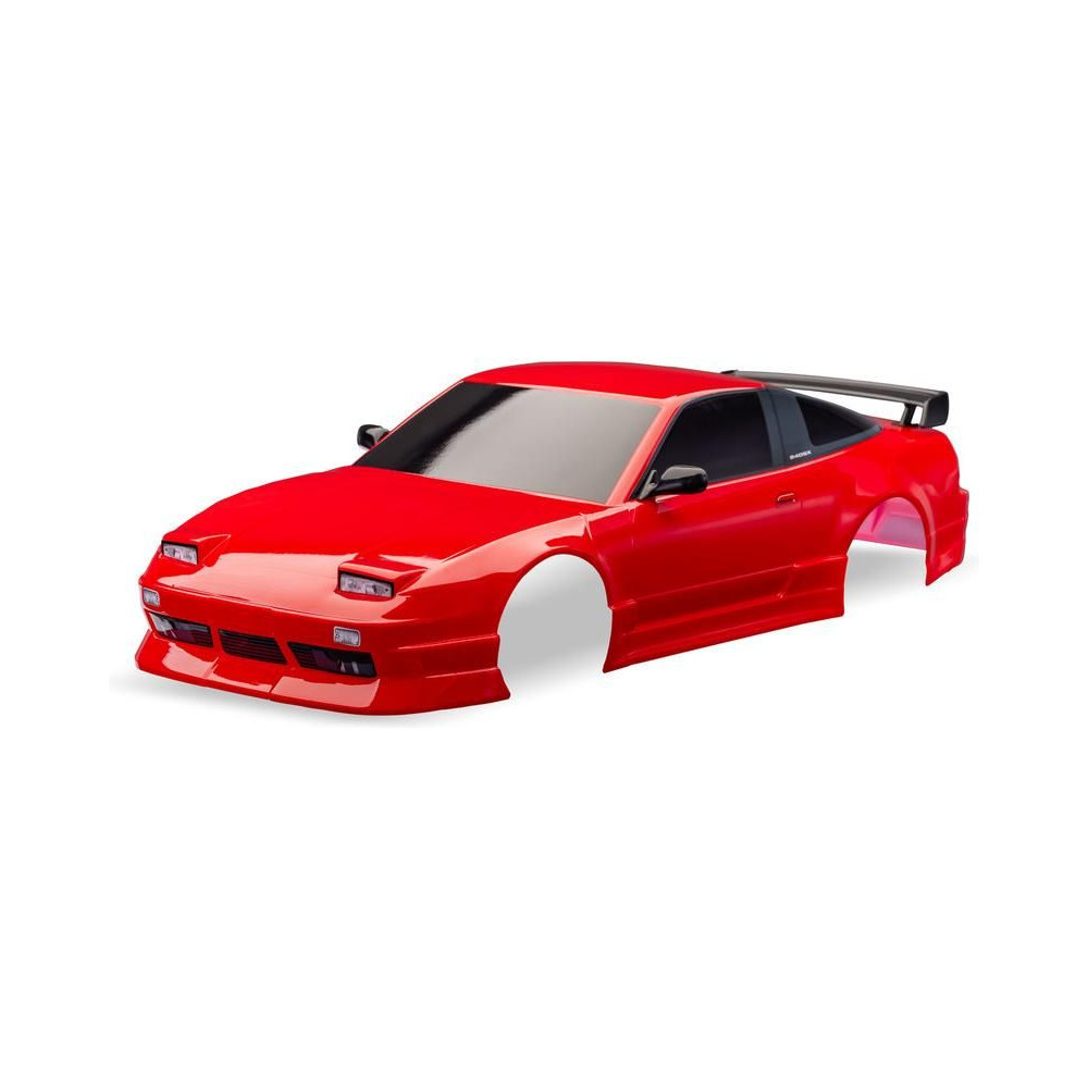 Traxxas karosszériák Nissan 240SX piros színben. Kész, festett karosszéria, beépített rögzítő konzollal.