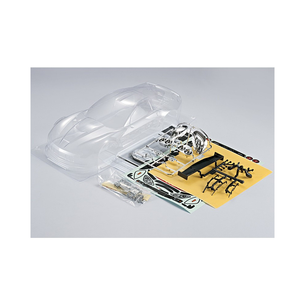 Killerbody Chevrolet Corvette GT2 karosszéria 1:10 RC autó modellekhez. Festetlen változat, tengelytáv 257 mm, hossz 420 mm, szélesség 190 mm. Tartós lexánból készült, gazdag tartozékokkal.
