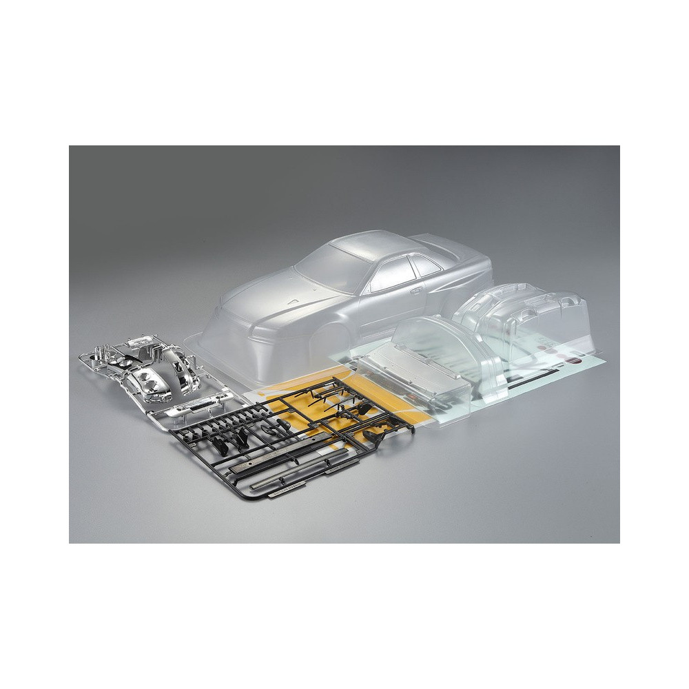 A Nissan Skyline R34 karosszériája átlátszó kialakítású, amelyet tetszés szerint festhetsz, így szabad utat engedhetsz a fantáziádnak. Az autó aerodinamikus és elegáns karosszériája nem fog csalódást okozni.