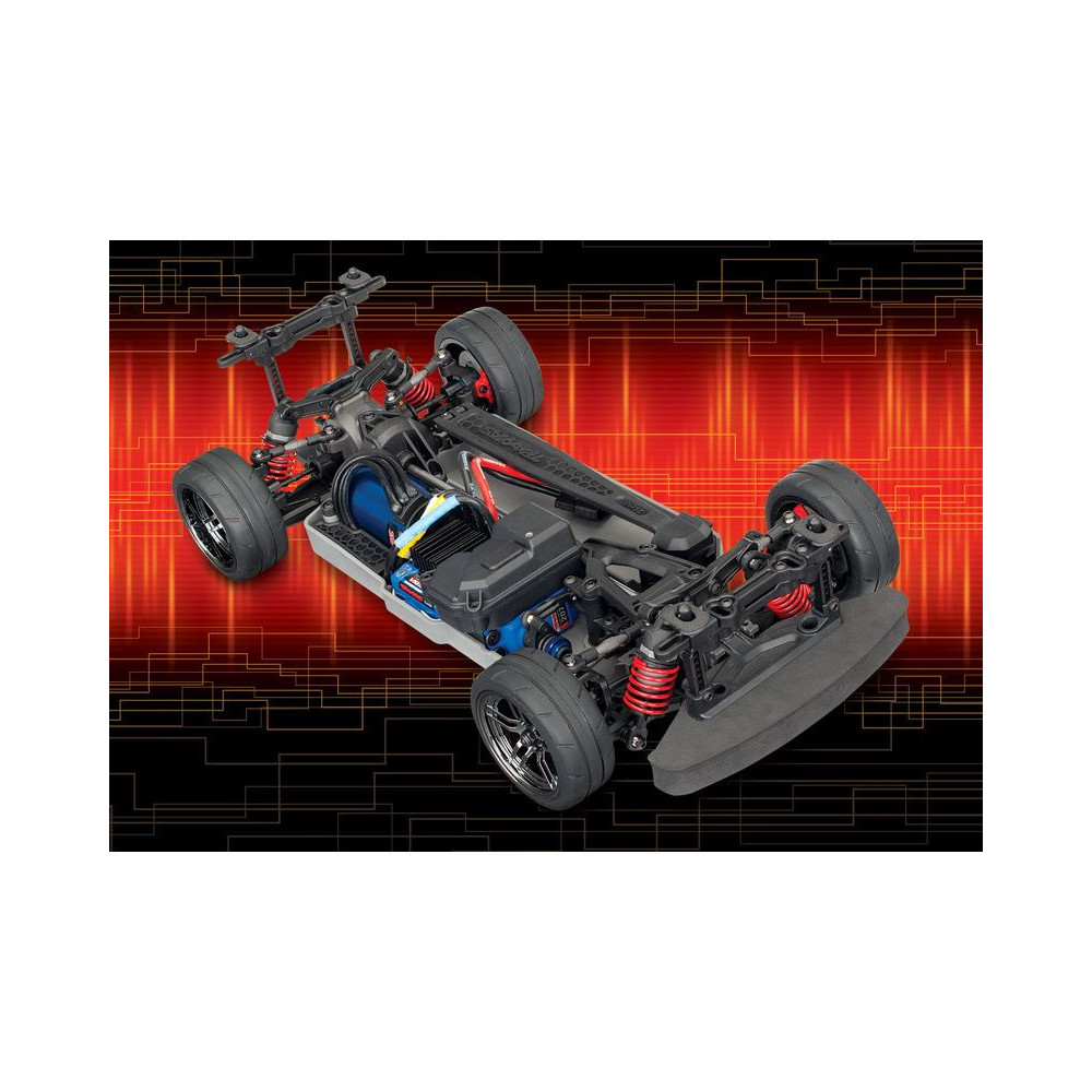 4-Tec 2.0 VXL On-road RC autómodell alváza a Traxxas-tól. Méretarány 1:10, összkerékhajtás, erőteljes váltakozó motor Velineon 550 és szabályzó VXL-3s, vízálló elektronika. Az alap sebessége 115 km / h. Kompatibilis a szabványos on-road karosszériákkal.