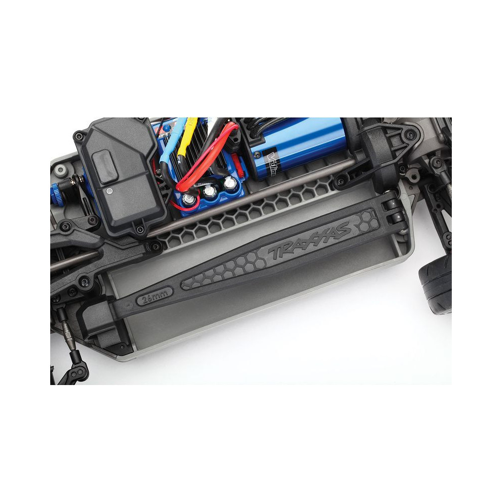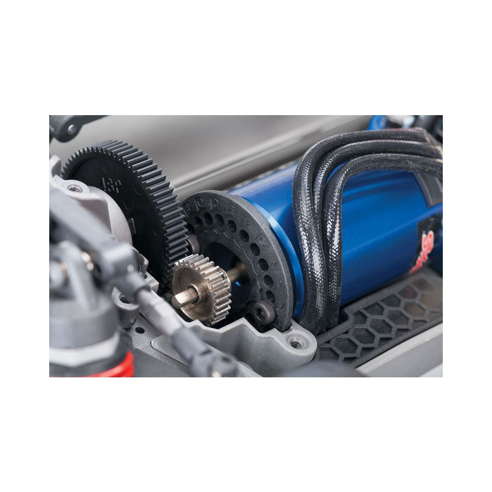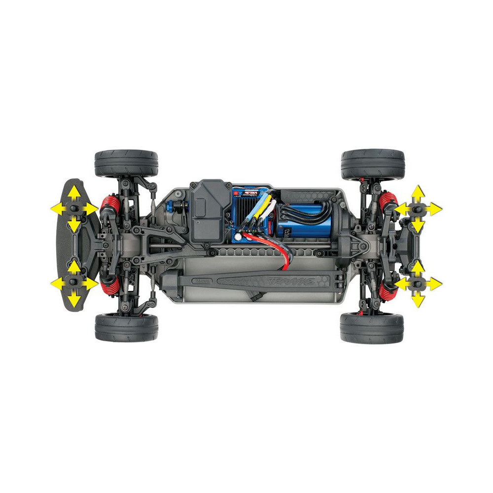 A Traxxas Stability Management (TSM) stabilizáló rendszer által nem csak a teljesítmény-, gyorsaság-, gyorsulás- és extrém sebességű kanyarvételből áradó élményben lesz részünk, de sokkal könnyebb vezetést és kontrolt biztosít a csúszós felületeken, mint például a pór, sima beton, hó vagy akár a jég.