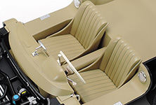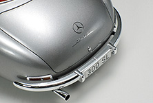 | Nezabudnite na interiér, ktorý ponúka veľkú úroveň detailov vrátane prístrojového vybavenia vyobrazeného s obtlačkami. | Sedadlá pod lopatou skutočne zdôrazňujú športový charakter modelu 300 SL, ktorý má svoje korene v prototype závodného automobilu. | Súčasťou sú diely nárazníka, ktoré umožňujú opätovné vytvorenie amerických alebo európskych modelov Spec 300 SL. (Obrázok: americké špecifikácie) |