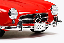 | Doprajte si čas na vynikajúcu presnosť pri stavbe elegantnej 300 SL. | Otvárateľné sú ikonické krídlové dvere automobilu, rovnako ako kapota motora. Súčasťou sú podperné diely, ktoré ich umožňujú otvoriť. | Model autenticky zachytáva radový 6-válcový motor v jeho výraznom prevýšení používanom na dosiahnutie tvaru s nízkym nosom. |