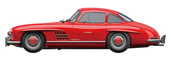 Mercedes-Benz 300 SL je kusom automobilovej legendy, na slávne nemecké športové auto s čajkovými krídlami, ktoré ak boli raz videné, sa nikdy nezabúda. Bolo to vydanie z roku 1954 a vychádzalo hlavne z úspešného závodného prototypu spred 2 rokov, ktorý zdedil vnútornú mechaniku závodného automobilu a TÚTO vznešenú siluetu. V skutočnosti neboli čajkové krídla iba estetickým majstrovským úderom, zrodili sa z nevyhnutnosti: vďaka najmodernejšiemu rúrkovému rámu 300 SL bolo použitie „bežných“ dverí s bočným otváraním trochu nepraktické. Karoséria v skutočnosti dostala od pôvodného prototypu niekoľko drobných vylepšení, čo viedlo k elegantnejšiemu vzhľadu cestného športového automobilu. O pohon sa staral radový 6 válcový motor, ktorý obsahoval technológiu priameho vstrekovania (svetovú novinku), ktorá generovala 215 koní a značnú rýchlosť. Fanúšikovia z celého sveta samozrejme túžili (a stále to robia), aby sa im 300 SL dostalo do ich rúk.
