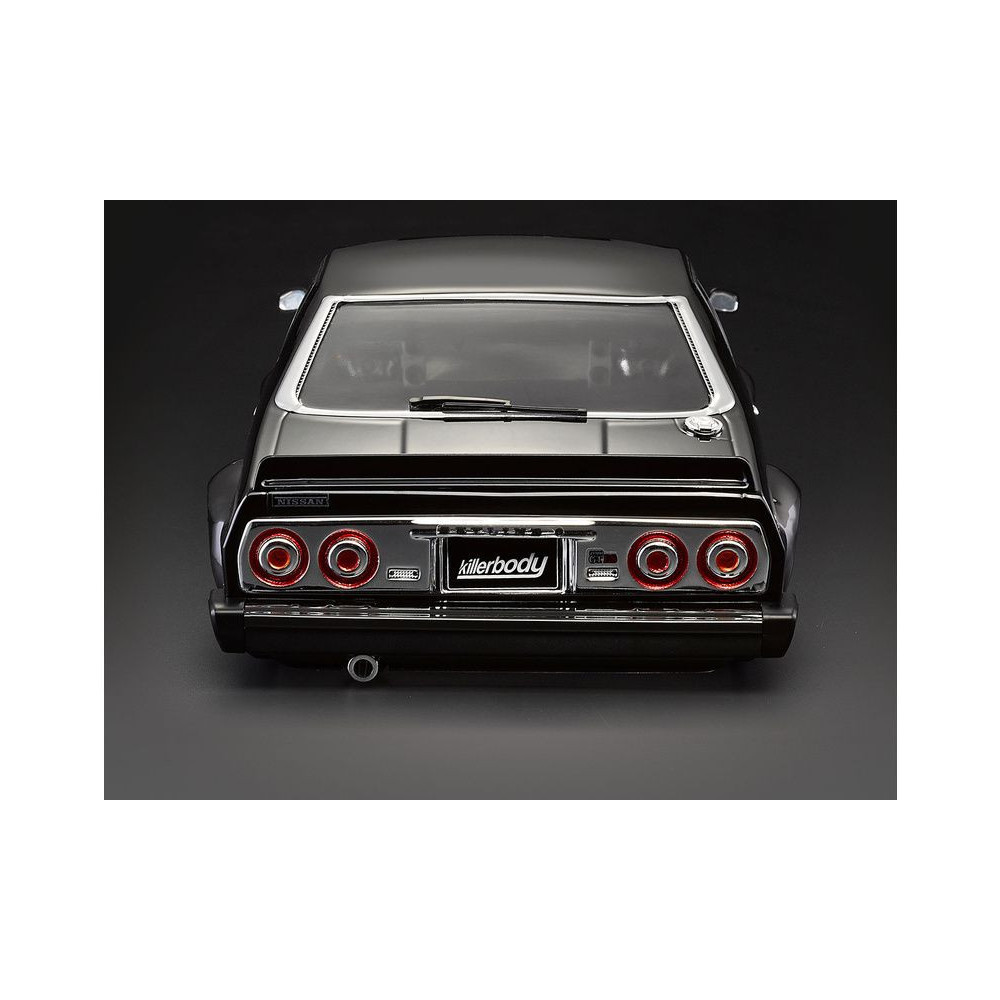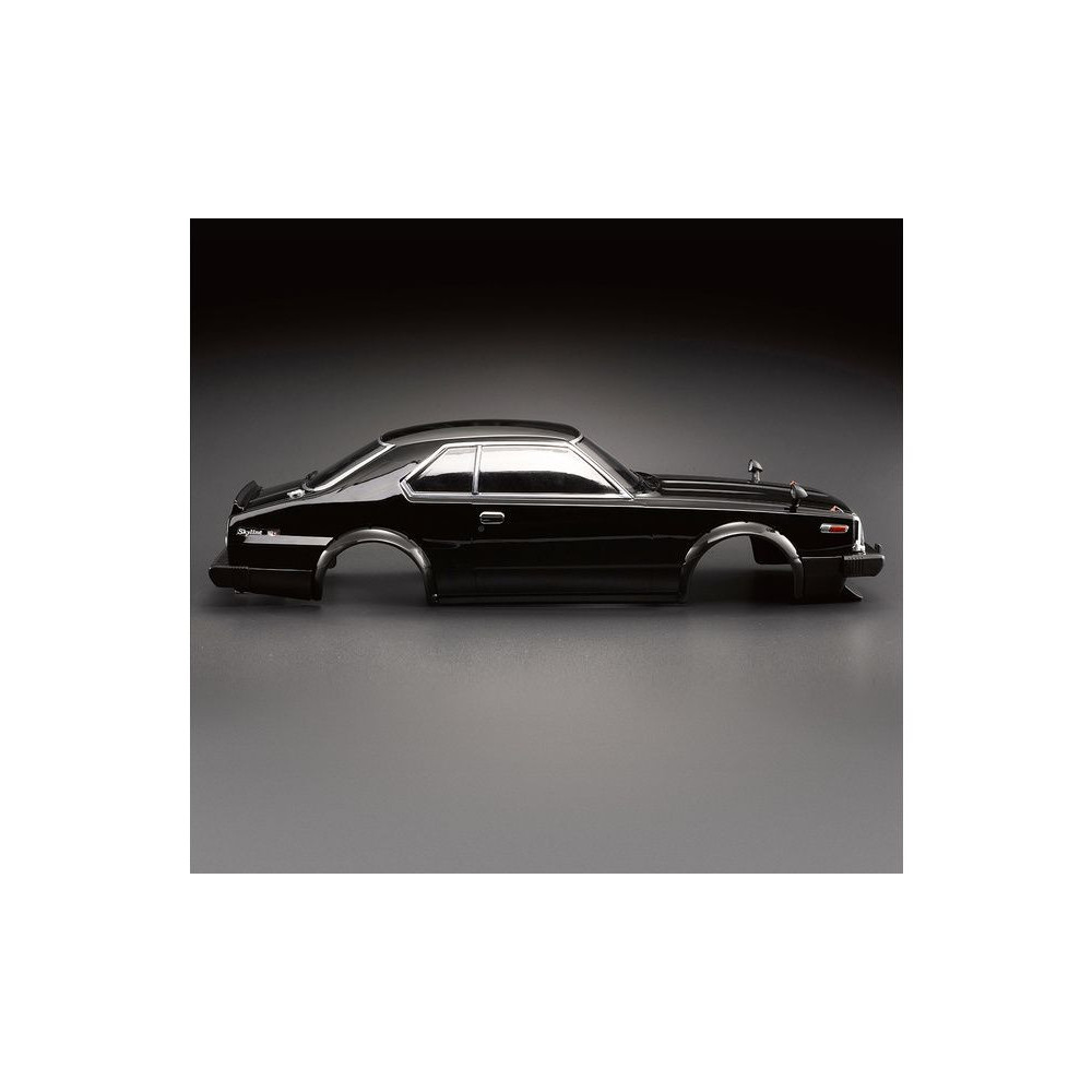 Body Killerbody 1:10 Nissan Skyline 2000 Turbo GT-ES C211, fekete, tengelytáv 257 mm, szélesség 195 mm, 1:10 méretarány. Tartós lexánból készült.