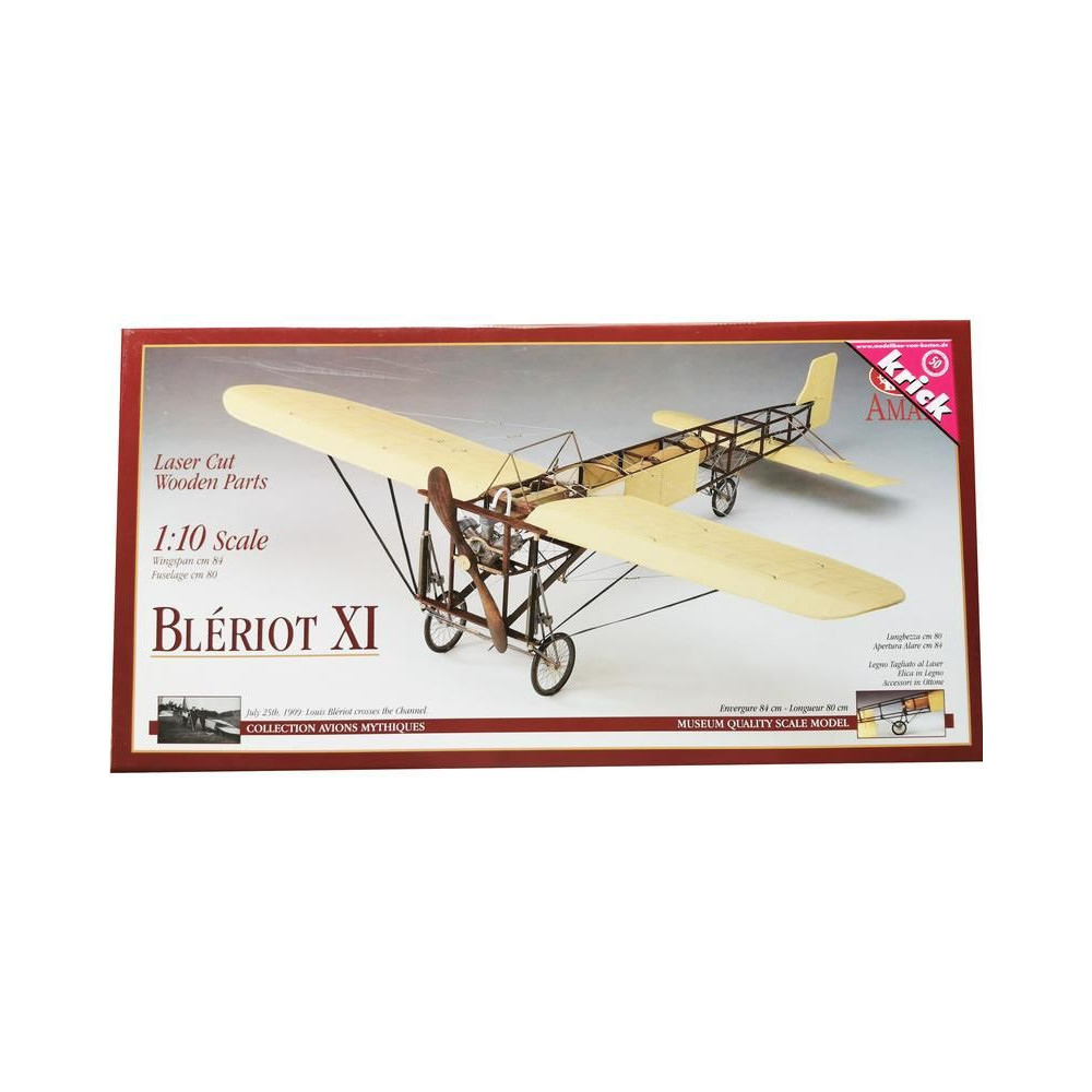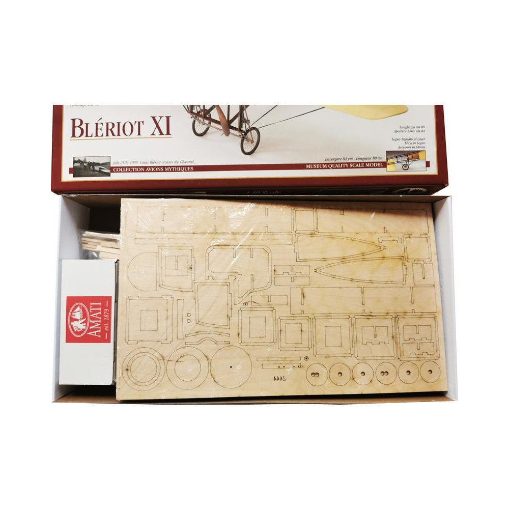 Az AMATI 1909-es Bleriot XI, annak a történelmi repülőgépnek a nem repülő modellje, amellyel Louis Bleriot 1909. július 25-én átrepülte a La Manche-csatornát. Minden részletet precízen elkészítettek, a kész légcsavar félig maratott sárgarézből készült. Tartalmazza a terveket és a részletes, képekkel illusztrált, olasz és német nyelvű leírásokat tartalmazó útmutatót.