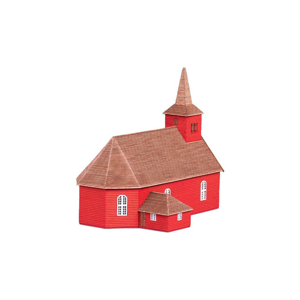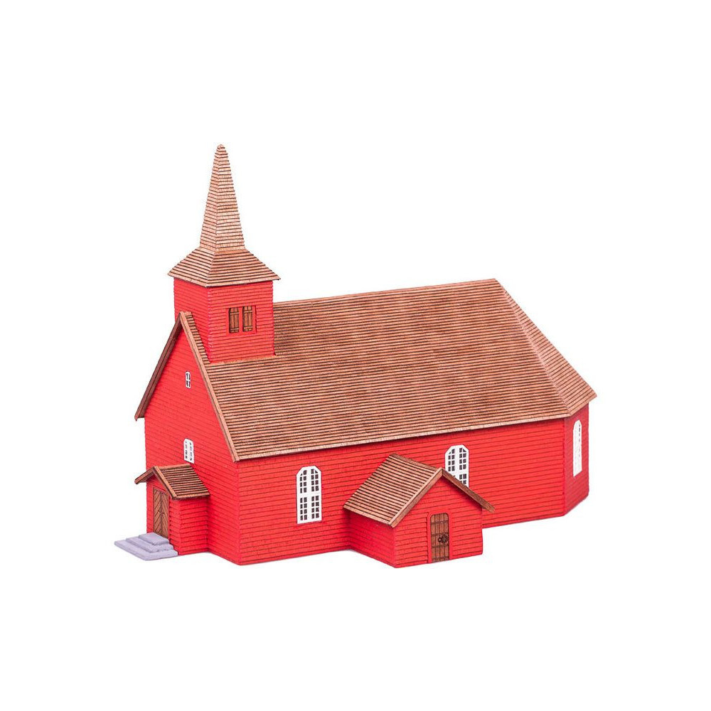 Az algarasi fatemplom díszítése 1:87 méretarányban. Az Älgarås középkori fatemplom az egyik legrégebbi a svédországi Västergötland régióban. A templomban egy egyedülálló Szűz Mária-oltár, egy csodálatos kereszt és egy fából készült, rovásírással díszített harangláb található, amely a 13. századból származik. Az 1:87-es méretarány lehetővé teszi, hogy az épületet a H0-ás vonalakon is használják. Hossza 270 mm, szélessége 210 cm, magassága 215 mm.